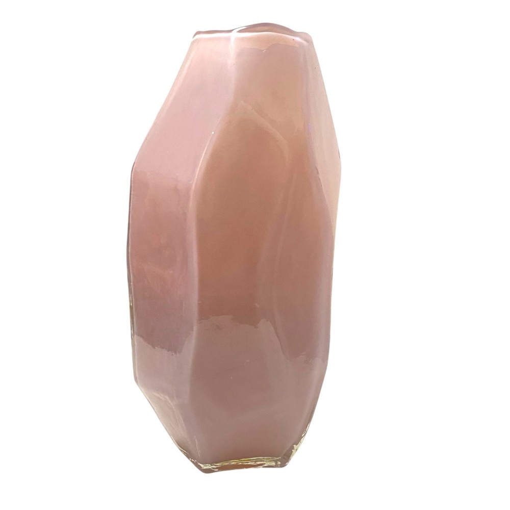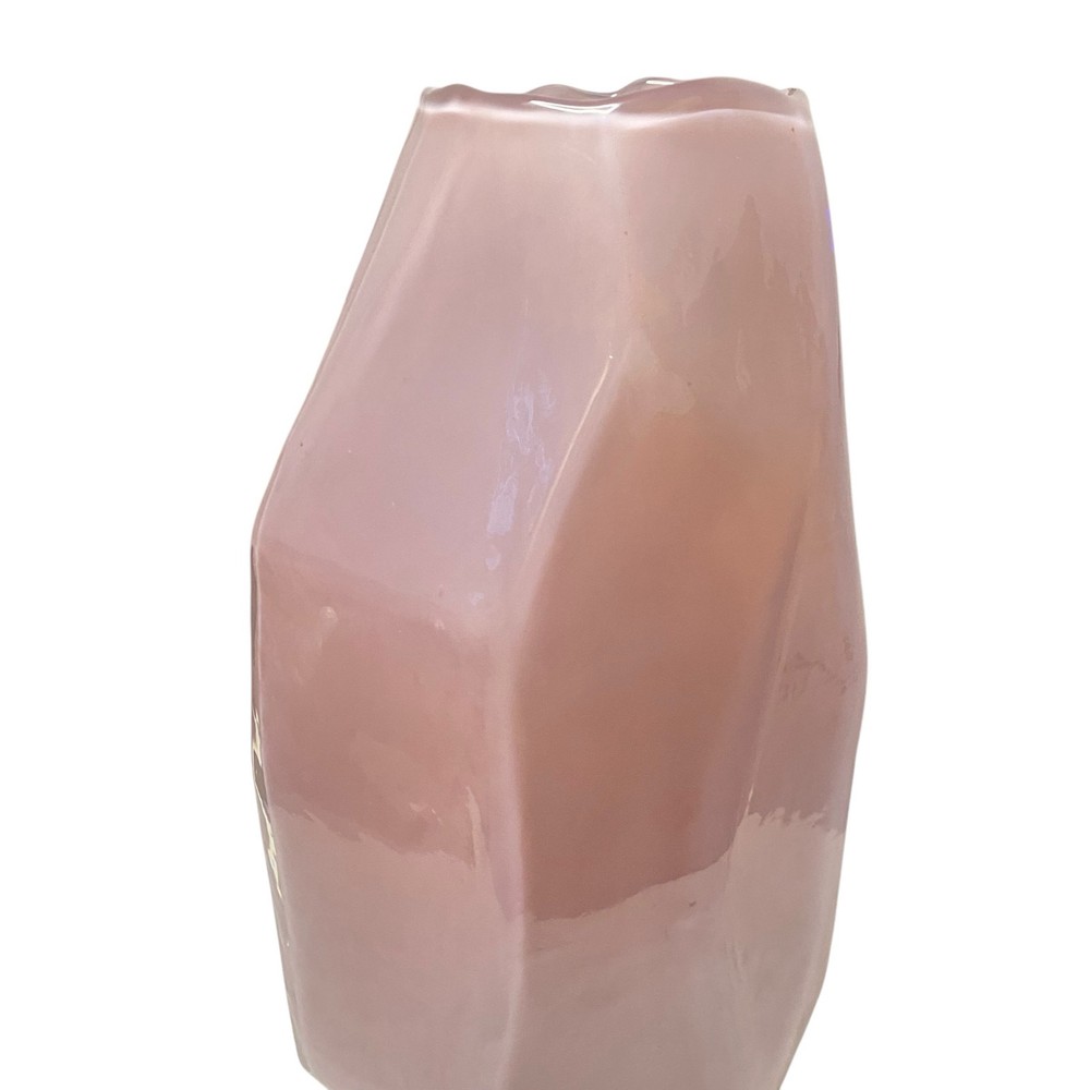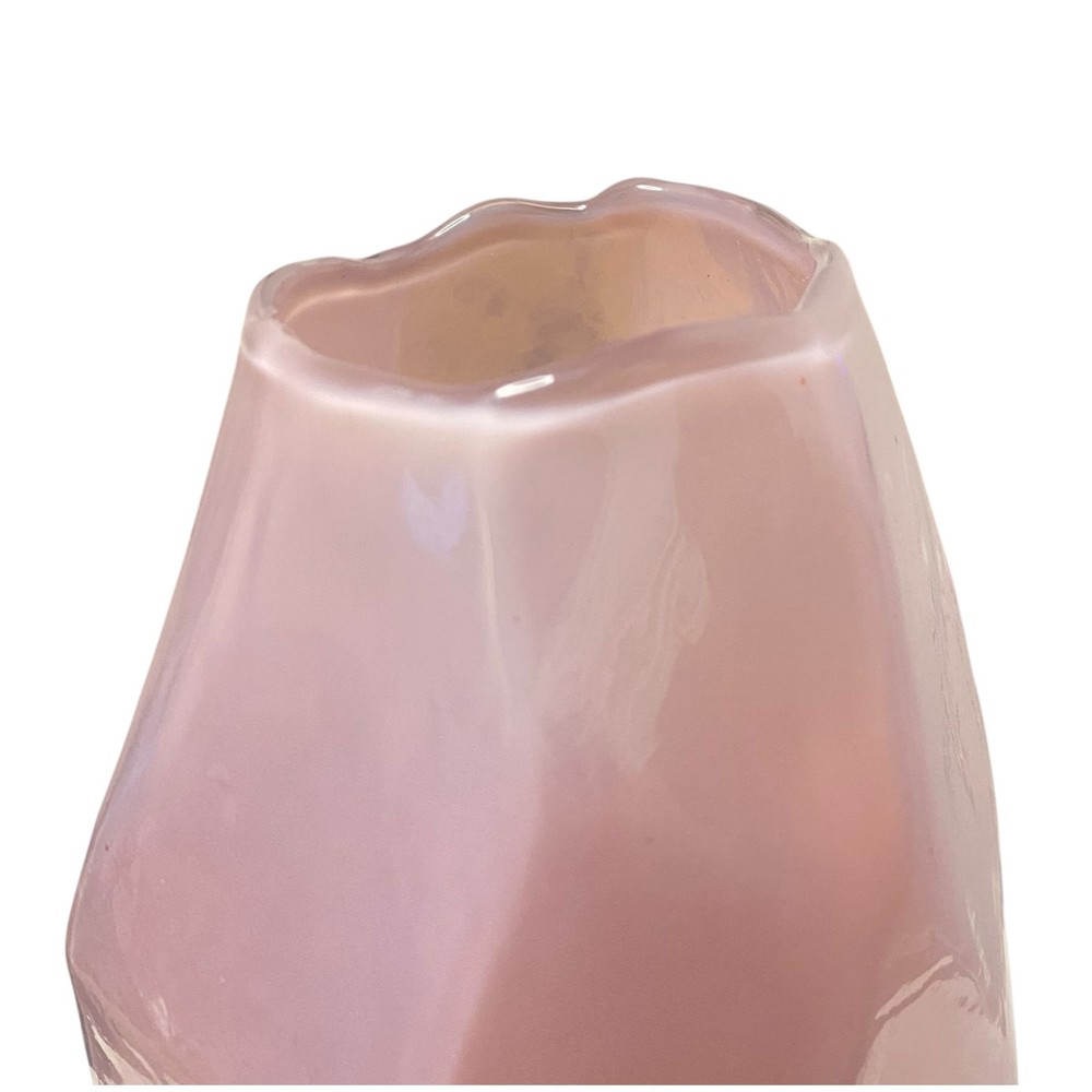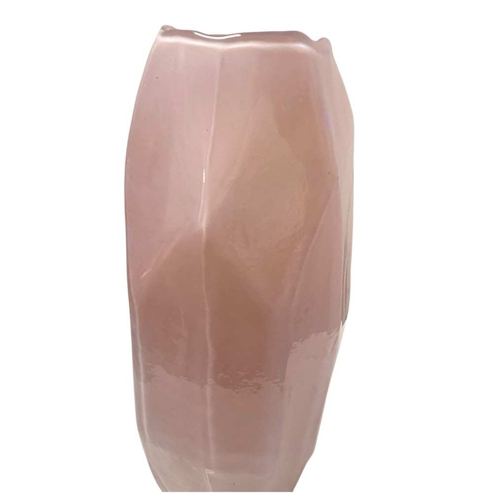 Pink Ombré Glass Flower Vase - Unique Geometrical Artsy Decor The gorgeous glass vase features a soft milky pink finish and geometric silhouette, making it a unique choice for every design. Color in pics may vary due to lighting and/or monitor settings SHOP POLICIES * All items ship within 1-3 business days (I always try to ship by next business day) * This item is used/pre-loved * Any defects (if any) are noted and shown in the photos * All sales are final * Please review the description/pictures and ask questions before purchasing