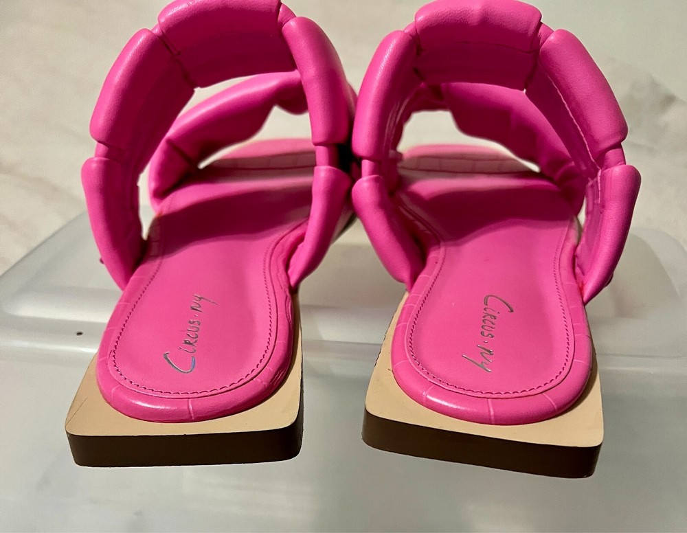 The Pink Punch Boutique Circus Inara Sandal by Sam Edelman is a stylish flat sandal in a vibrant pink color, perfect for women who wear a size 7 shoe. This sandal features a flat heel style and belongs to the SAM EDELMAN CIRCUS collection, offering comfort and style for everyday wear.