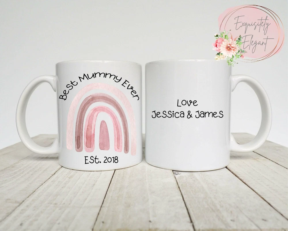 Pink Rainbow Mummy Mug Mothers Day Mug Gift Cute Mug Mum Mug Custom Mug Birthday Product Details.. This high quality 11oz. ceramic white mug has a premium hard coat that provides crisp and vibrant color reproduction sure to last for years. Perfect for all hot & cold beverages. The highest quality printing possible is used. It will never fade no matter how many times you wash it. Material: 100% Ceramic. Print both sides. Dishwasher and Microwave Safe. High Gloss + Premium White Finish. Printed in the U.S.A. Personalized & Custom. We support personalized and custom mug to add custom, when placing an order, you can add notes to the "order note" in shipping address section. Also you can contact us directly via message. Shipping Info. Ready to ship in 1 to 2 business days, All products are made-to-order and proudly printed in the United States. Shipped by USPS and DHL, You will receive your order in 5-7 days. Replace & Refund. All products are defective during shipping broken, chipped will be replaced free of charge. You are not satisfied with the product, we will refund 100% money to you. If any other issues arise, please do not hesitate to message, we would be more than happy to assist you.