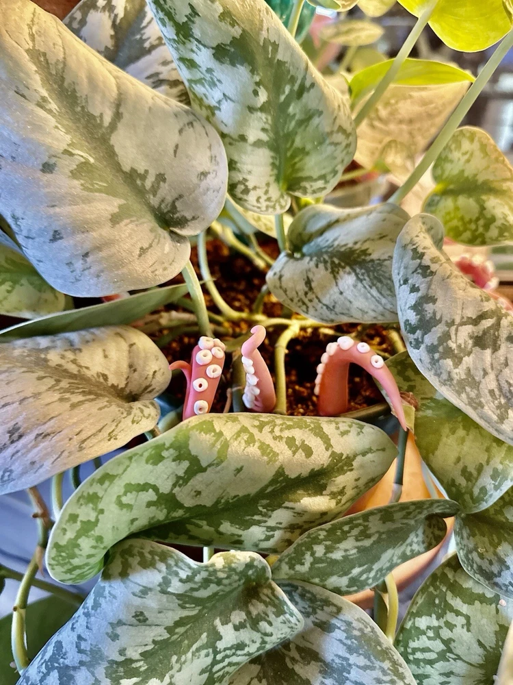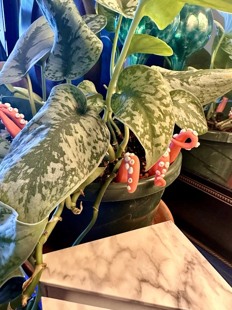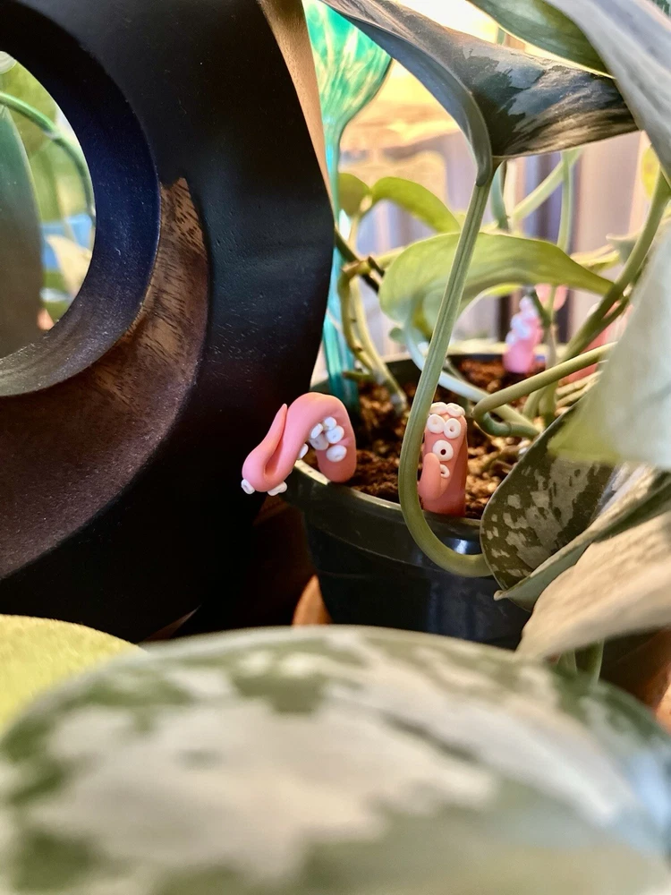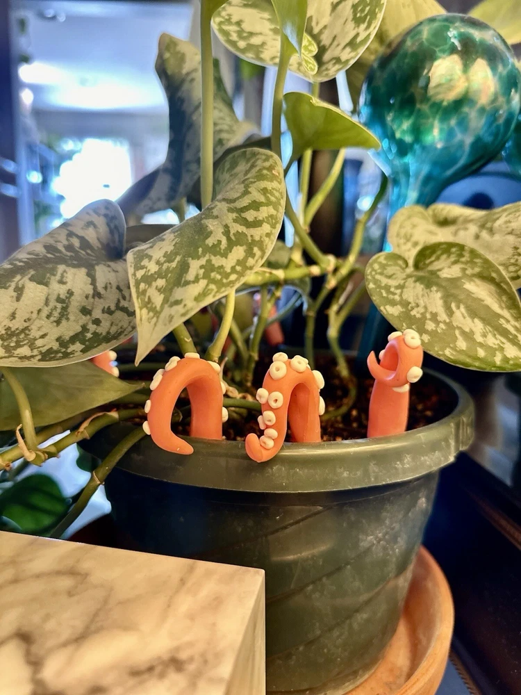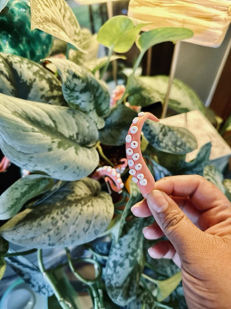 Add a touch of modern style to any room with this handmade PINK sea creature figurine. The intricate design features tentacles and plants, making it a perfect addition to any holiday or seasonal décor. Measuring 6 inches in length, this polymer clay figurine is sure to catch the eye of anyone who enters the room. Whether you're a fan of sea creatures or simply looking for a unique decoration, this figurine is a great choice. This Pink Sea Creature figurine is perfect for all occasions and will add a touch of whimsy to any room. It is a great gift for teens, adults, and kids alike, and will be appreciated by anyone who loves unique and handmade decorations. With its modern style and intricate design, this figurine is sure to be a conversation starter. Pink Sea Creature Tentacles - Halloween Decor - Plant Friend - Fall Plant Decor - Octopus Tentacle - Unique - Modern - Indoor Plant •Product Info Customize your plants with these versatile octopus leg decorations. Use them to create a playful underwater scene, a spooky Halloween display, or a quirky touch to your home-the possibilities are endless! Reminders and Things to Know: # You will obtain eight tentacle legs # Size may vary: 6 Inches Tall & 2 Inches Wide + The base where you will plug the tentacle is made from copper wire + Made in the USA + Plant not included Reminders + These are handmade, and we work hard to ensure & measure as close to the item purchased
