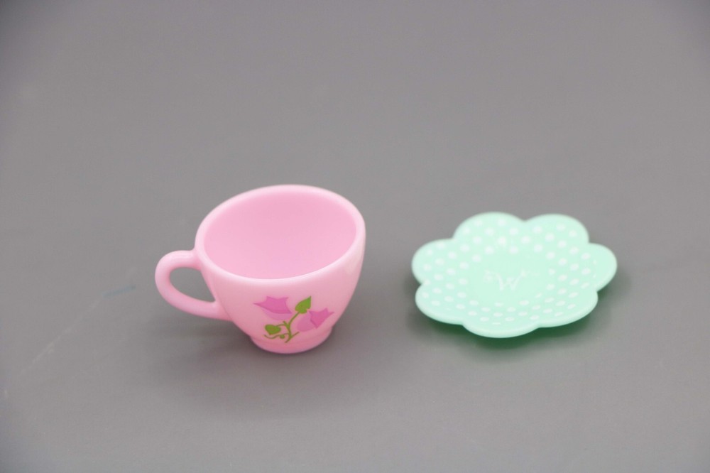 Shipping discount: Free shipping for orders over US $25.00,visit our store to add others items. Item Descriptions: A pink teacup with floral artwork and a blue saucer Brand: American girl After sales: Any questions(such as broken、lost……) before you leave feedback please feel feel to contact us,we will do our best to solve it.