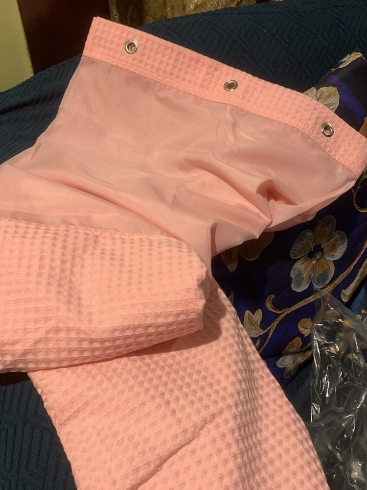 Pink Textured Fabric Shower Curtain with Hooks, Machine Washable, Bathroom