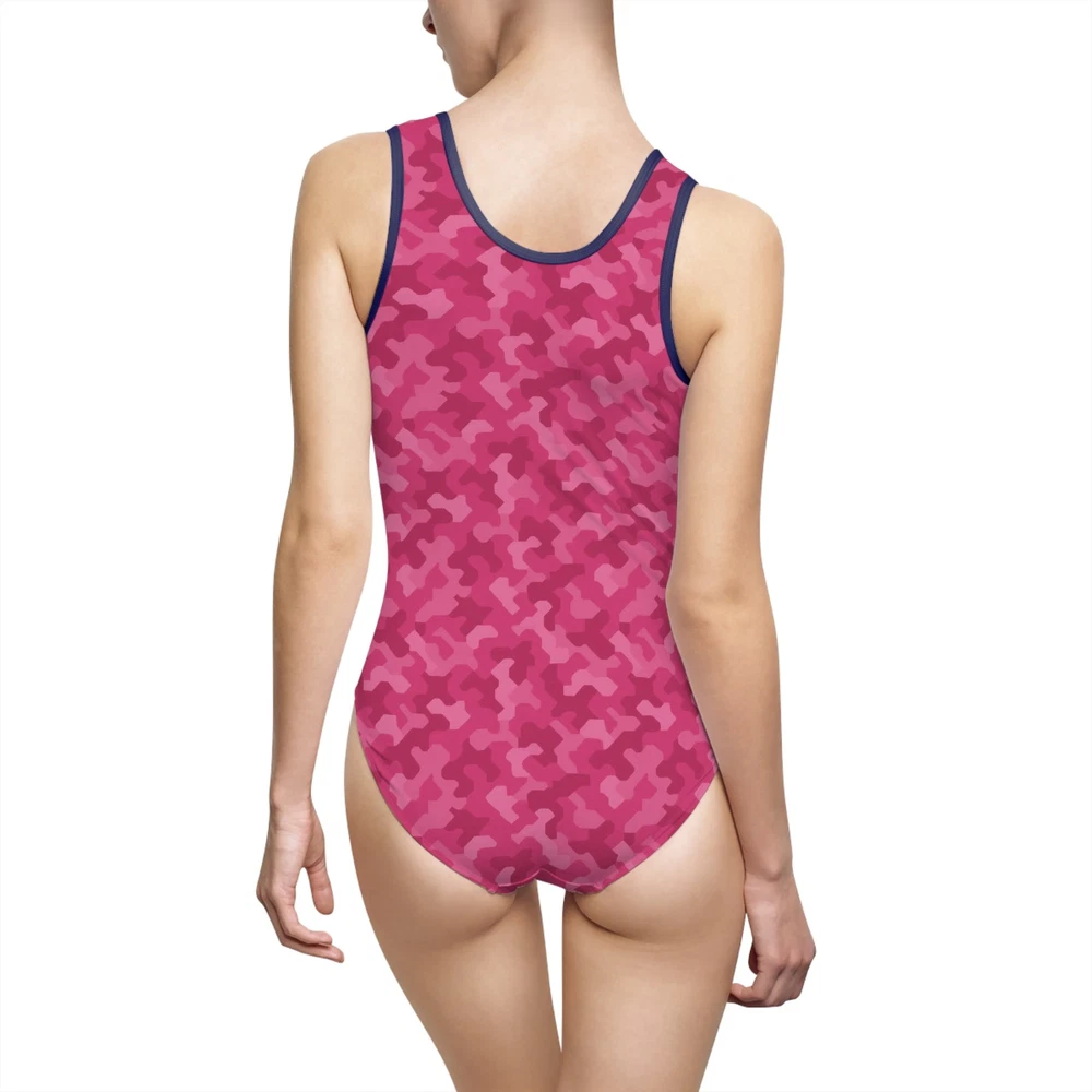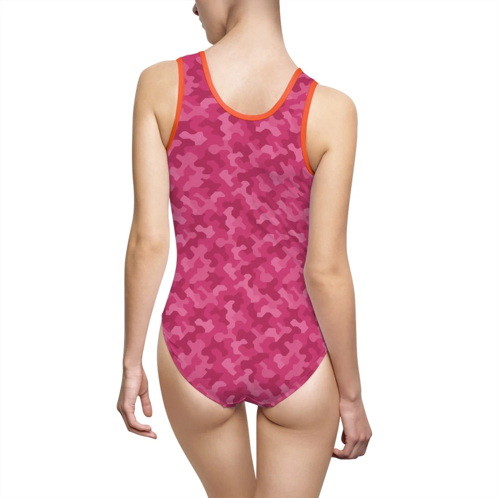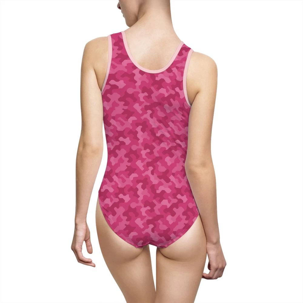 Pink urban camouflage pattern, women's one-piece swimsuit. This swimsuit exudes a trendy and stylish vibe, perfect for lounging by the pool or catching some waves at the beach. Ideal for women who love vibrant and unique swimwear designs. Perfect for summer vacations, beach trips, pool parties, and lounging by the pool. Product features - Inner elastic for better chest area support - Vibrant colors that won't fade in water or sun - 85% Polyester 15% Spandex for strength and stretch - U-shape neck cutout for added style - Lightweight fabric for comfort Care instructions - Do not dryclean - Iron, steam or dry: low heat - Dry flat - Do not bleach - Machine wash: warm (max 40C or 105F) Size guide All measurements in the table refer to product dimensions. Imperial XS S M L XL 2XL 3XL Width at armpits, in 13.39 14.17 14.96 15.75 16.54 17.32 18.11 Waist width, in 11.81 12.60 13.39 14.17 14.96 15.75 16.54 Hip width, in 14.17 14.96 15.75 16.54 17.32 18.11 18.90 Side length, in 10.24 10.63 11.02 11.42 11.81 12.20 12.60 Length across front, in 21.26 21.65 22.05 22.44 22.83 23.23 23.62 EU representative : HONSON VENTURES LIMITED, 3, Gnaftis House flat 102, Limassol, Mesa Geitonia, 4003, CY Product information : Generic brand, 2 year warranty in EU and Northern Ireland as per Directive 1999/44/EC Care instructions : Do not dryclean, Iron, steam or dry: low heat, Dry flat, Do not bleach, Machine wash: warm (max 40C or 105F)