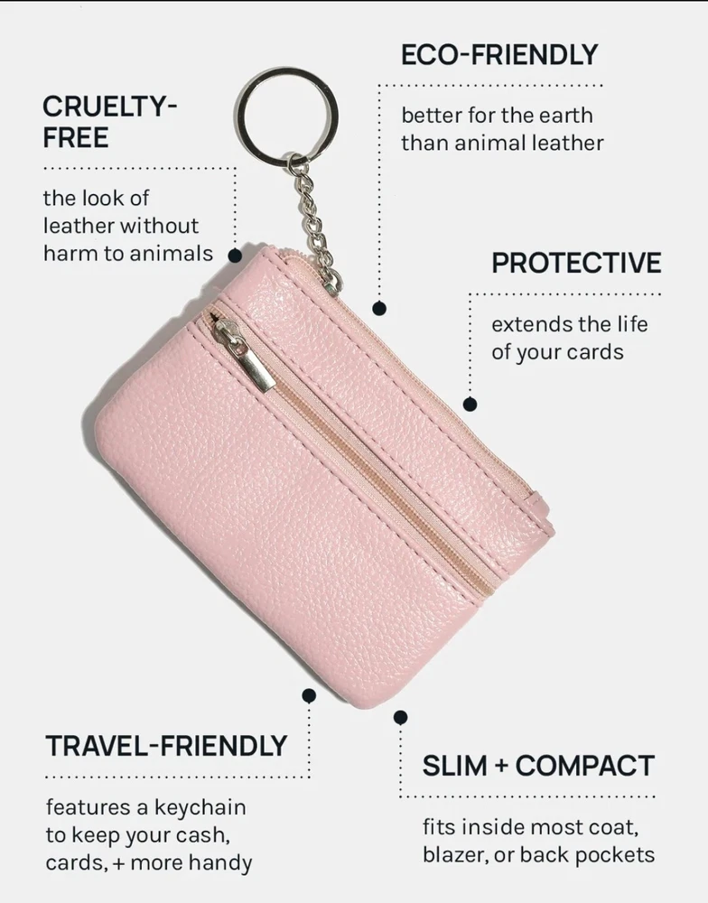 Vegan Leather Coin Purse with Keychain in Pink NWT Vegan Leather Coin Purse with Keychain in Pink NWT •Lightweight •Slim •Keychain •Holds coins + cards NWT #coinpurse #Keychain #veganleather #pink