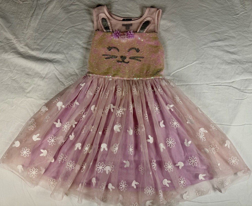 Absolutely magical Pink & Violet girls tutu dress featuring a shimmering sequin bunny face bodice with glitter ears and floral detail β paired with a soft pink layered tulle skirt adorned with white glitter daisies and bunny silhouettes πΈβ¨ This is the perfect statement dress for Easter, spring photos, birthdays, school parties, or bunny-themed events π£π Brand: Pink & Violet Size: 6X Color: Blush pink with pastel sequin bodice Features: β’ Sleeveless design β’ Sequin bunny face with glitter details β’ 3D floral accents at neckline β’ Soft mesh overlay at top β’ Multi-layer pink tulle skirt β’ White glitter bunny & floral print on skirt β’ Fully lined β’ Pull-on style Measurements (approx. laid flat): β’ Chest: ~12β across β’ Waist: ~11.5β12β across β’ Total length (shoulder to hem): ~27β28β Condition: Good pre-owned condition. Light wear consistent with normal use. No major stains or tears noted. Sequins intact and skirt remains full and fluffy. Please review all photos for full details. Such a sweet, twirl-worthy piece β whimsical, sparkly, and perfect for springtime magic π·β¨ Keywords Pink & Violet dress, girls 6X dress, Easter bunny dress, spring tutu dress, sequin bunny dress, girls party dress #GirlsFashion #EasterDress #BunnyDress #SpringStyle #LaBelleAdy π» LaBelle Ady β Vintage Beauty, Reimagined π»