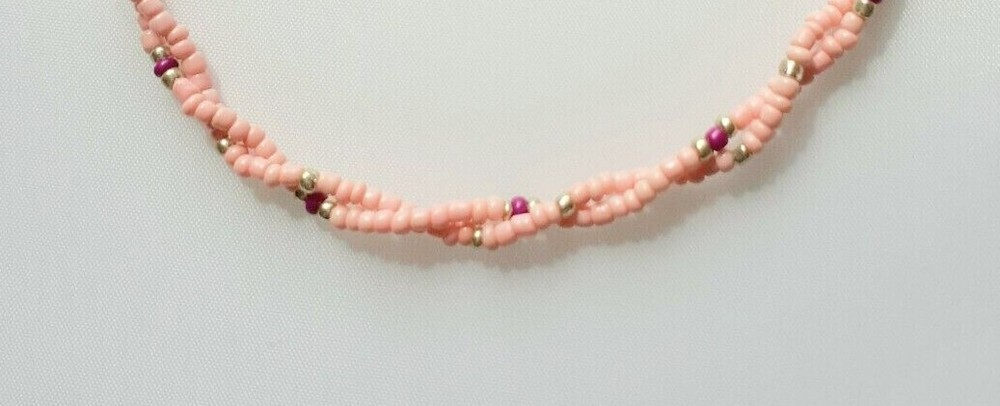 Stretch double strand pink seed bead anklet Made on elastic with 2mm pink and metallic gold glass seed beads Made to the length of your choice, plus an extra 1inch gold plated extender chain