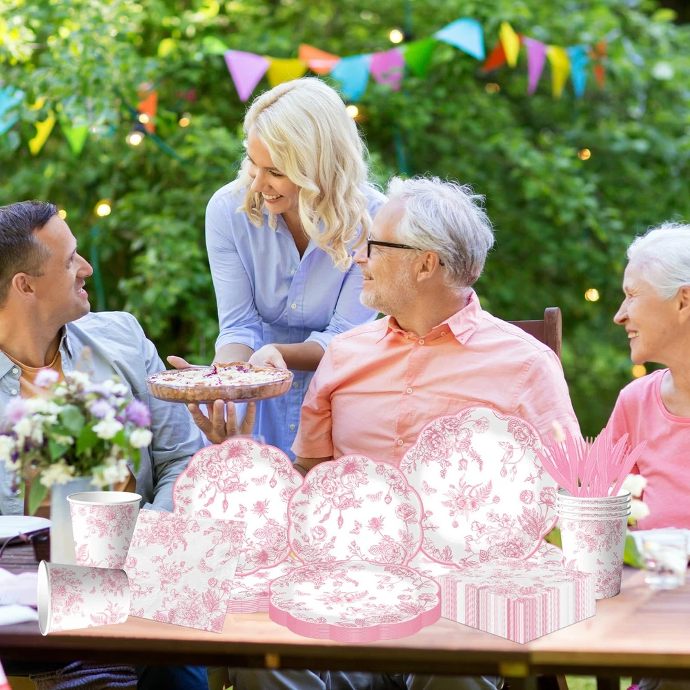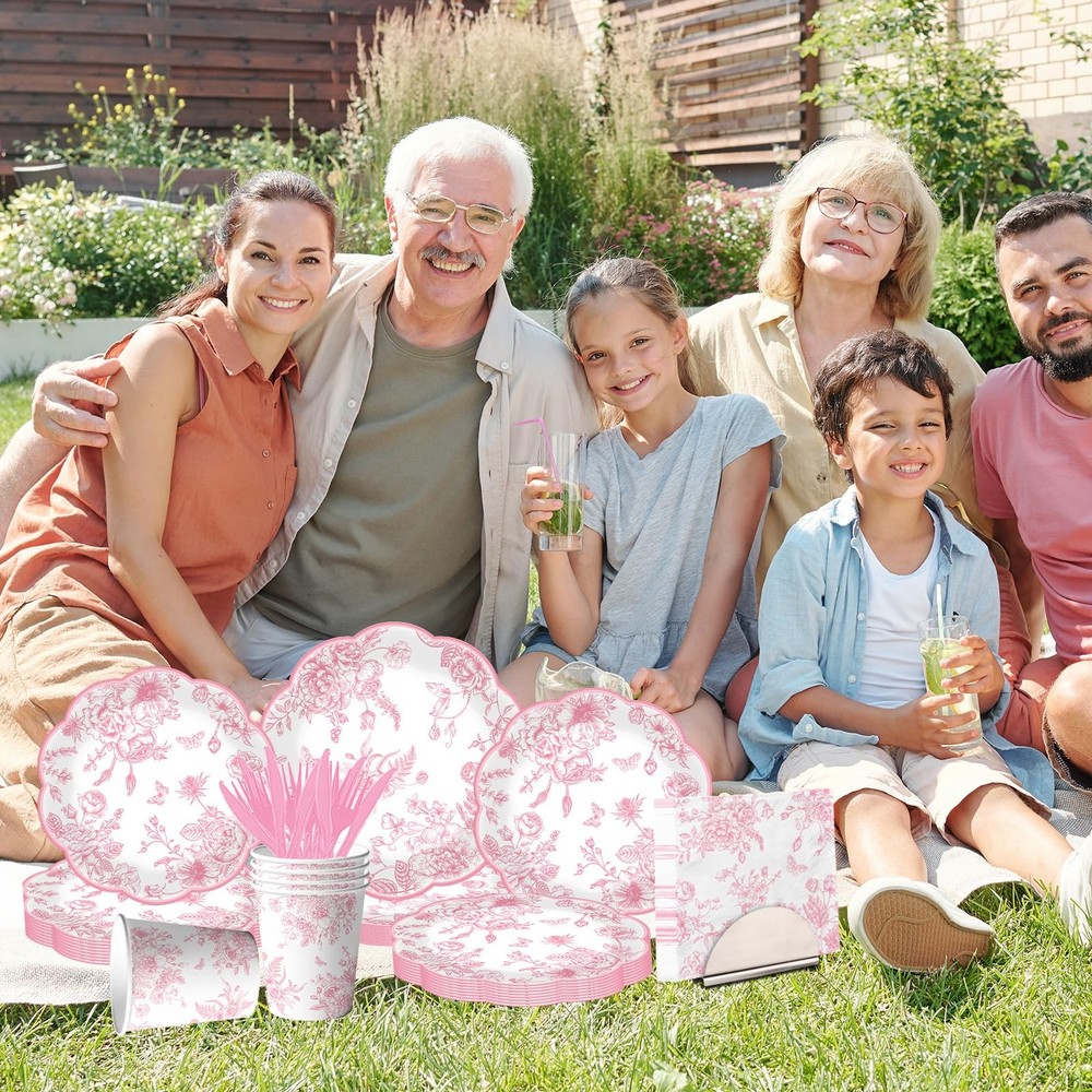 Pink floral Paper Plates, 144Pcs Toile Scalloped Paper Plates and Napkins inc...