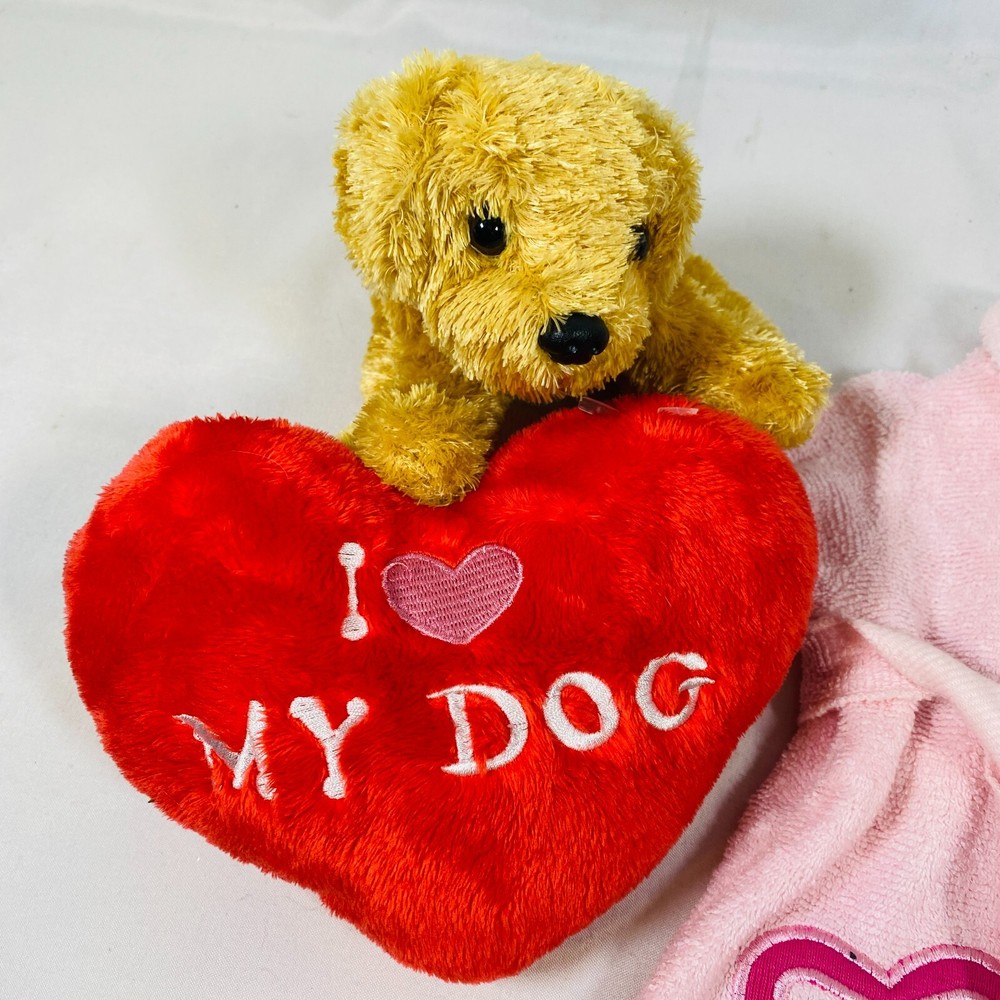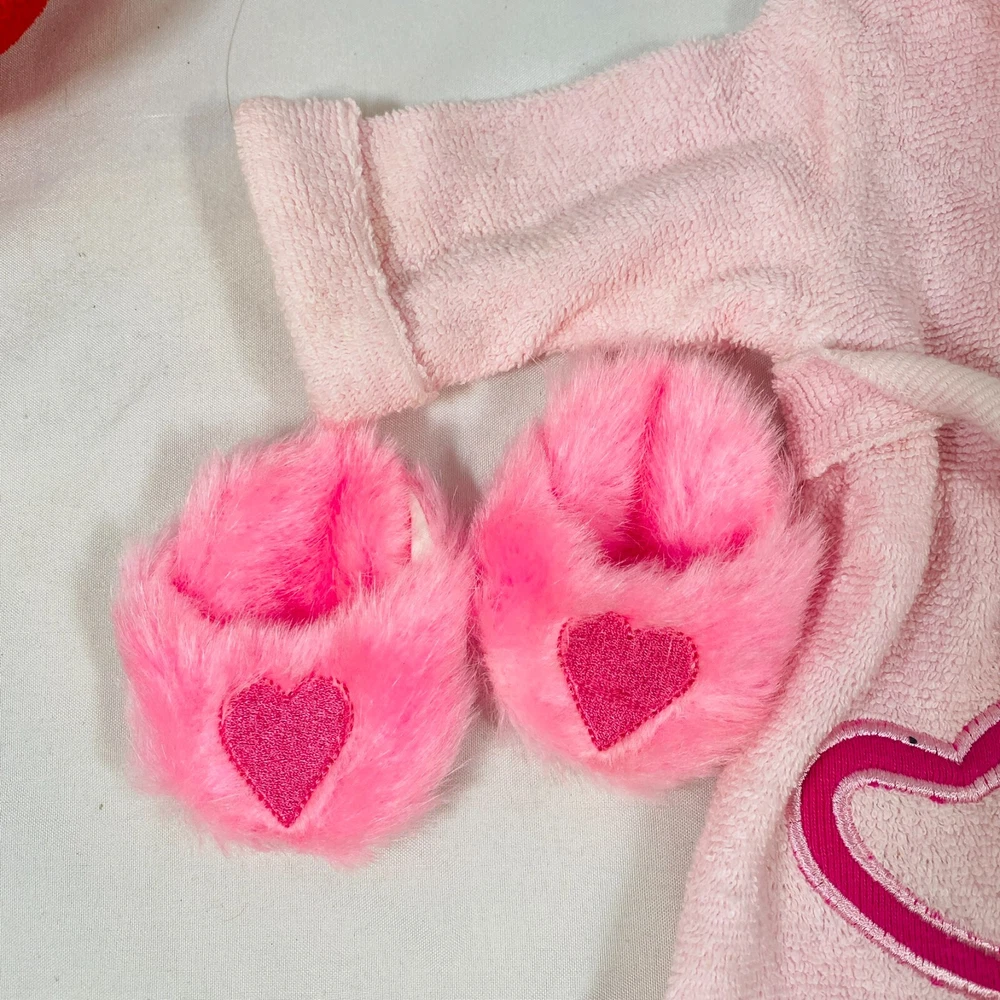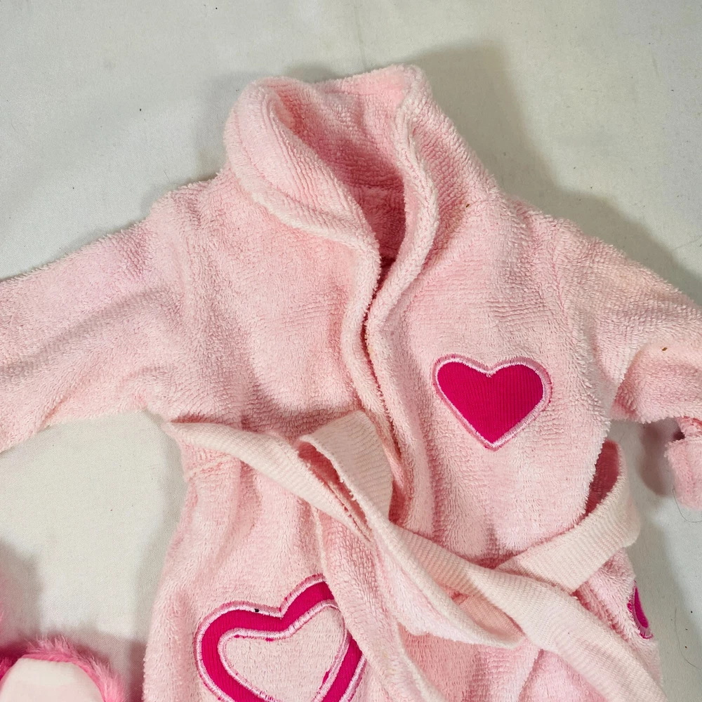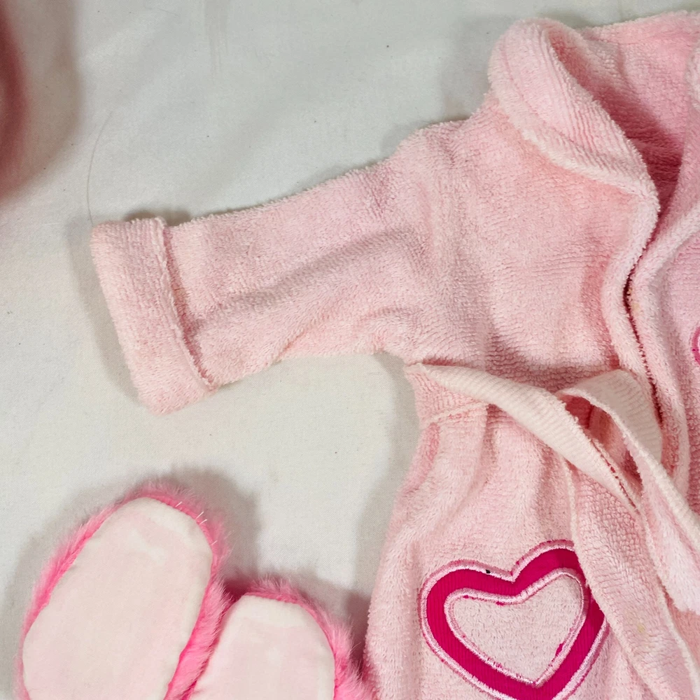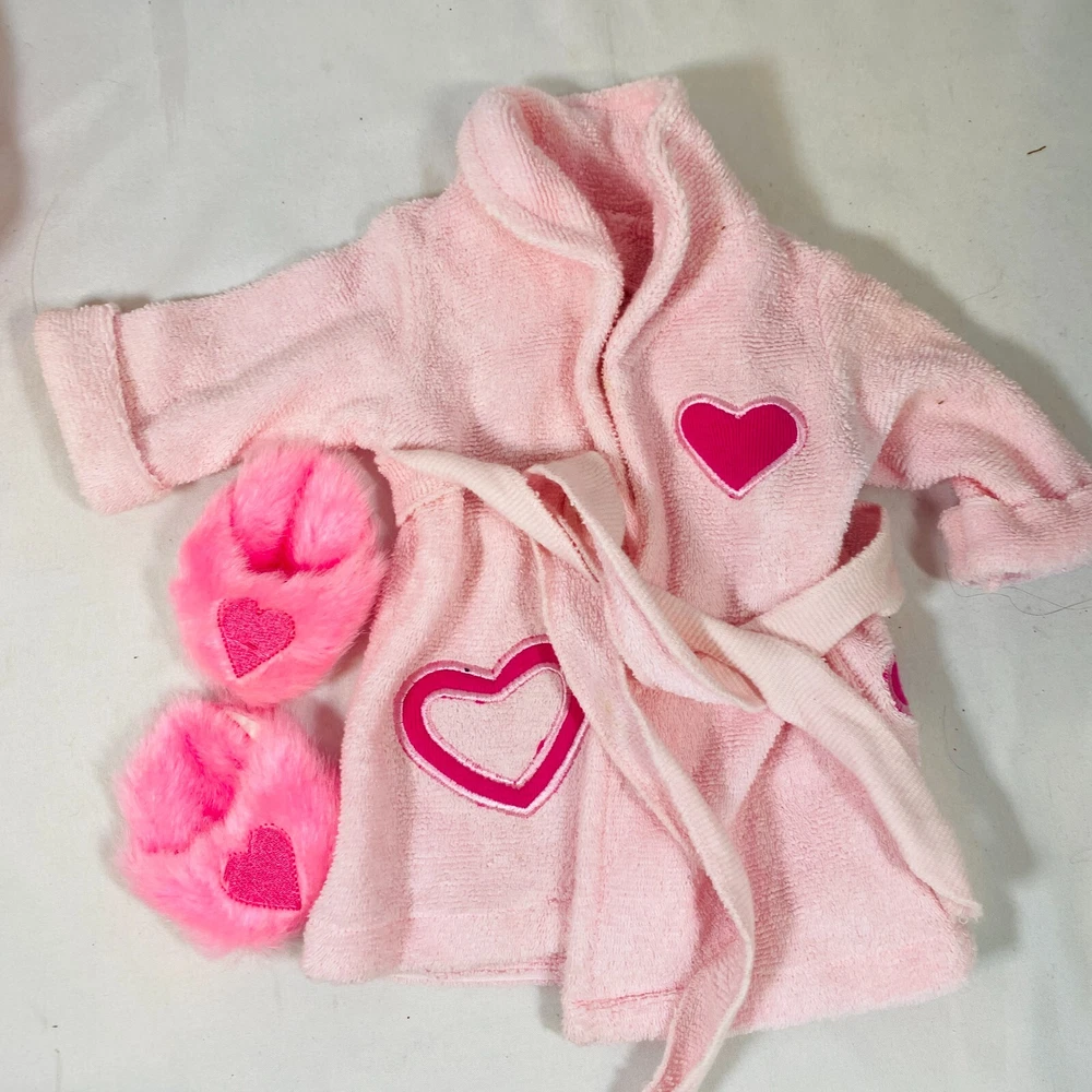 Set for 18" American Girl Dolls & Similar. Includes Pink Heart Robe & Slippers (unbranded) + Golden Retriever Pet Puppy Dog & Red Heart Pillow, all sized for 18" dolls. In excellent condition, may show minor signs of play such as an occasional run or loose thread, no stains or rips. Please see all pictures for exact cosmetic condition and other details, and ask any questions before purchasing. We are a husband and wife team with a growing family, and greatly appreciate your support of our small business. Please browse our eBay store for a variety of other American Girl items. We hope you enjoy this set!