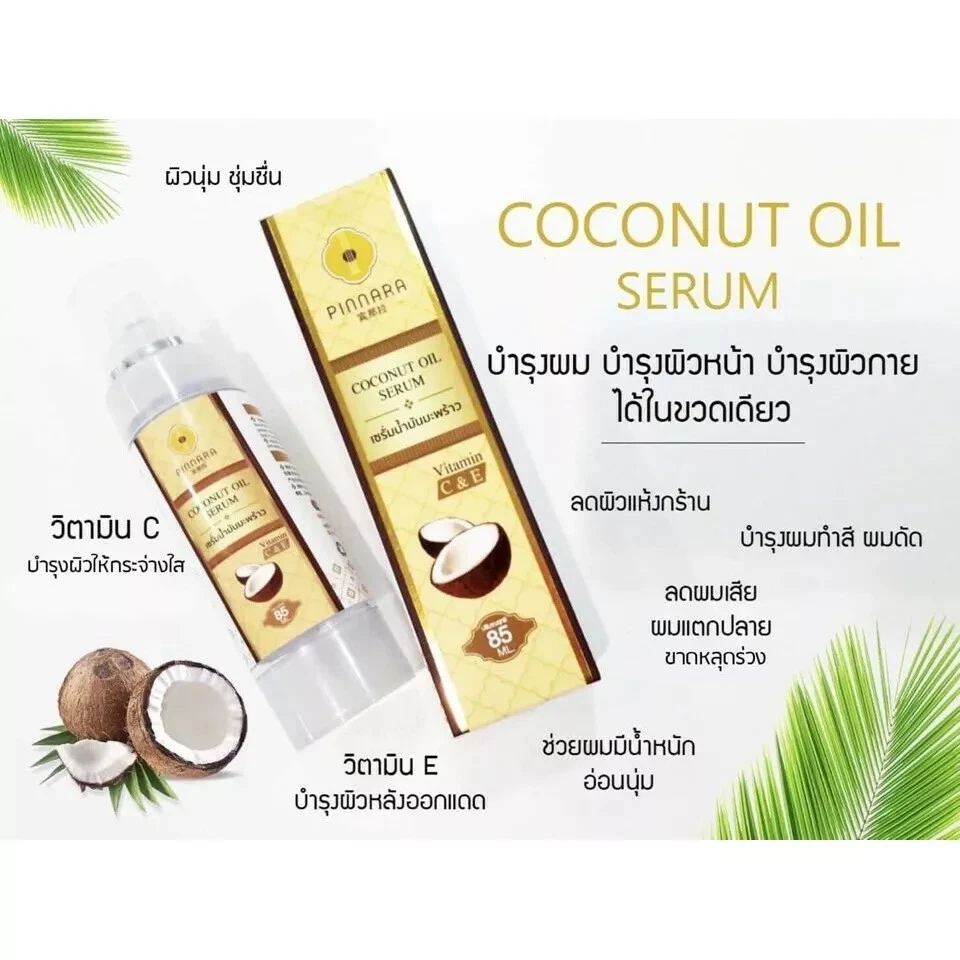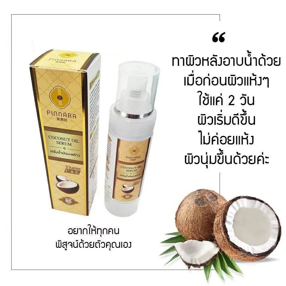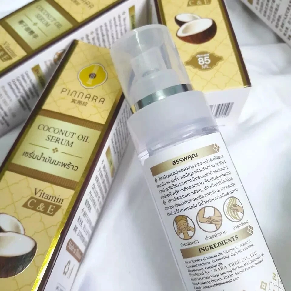 1x Pinnara Coconut Oil Serum Virgin Cold Press Vitamin C & E for Face Skin Hair ⭐ STANDARD SHIPPING WITH TRACKING NUMBER ⭐ Product Details: Brand: Pinnara Condition: New with box Type: Serum Size: 85 ml Quantity: 1 Bottle Thailand Product FDA : 10-1-6010015975 Product Description: Authentic Pinnara Coconut Oil Serum Coconut Oil Serum A helper for beauty treatments from head to toe. Want to have beautiful skin. Coconut oil serum can help you whether it is used to nourish your face, body or hair. It's full for you in a complete set in one bottle. Guaranteed with instant results and absolutely safe does not cause harmful residues If you are looking for a helper to nourish from head to toe what it is. Coconut oil serum is the best solution for your needs. Solve all problems in one bottle with skin problems that bother women. Facial skin Helps the surface of the skin to be moisturized and radiant naturally. Reduce wrinkles, blemishes, freckles, dark spots fade. anti oxidant make you look younger Apply before makeup Helps makeup last longer Wipe off makeup, clean face without chemicals. Body Rejuvenate the skin after sun exposure to return to moisture. The skin is not damaged from sun damage and pollution. Make the skin white and clear. soft to the touch Nourishes heels, elbows, dry spots to be soft and smooth. Maintain and repair small to be strong Hair Helps to make hair soft, smooth, shiny, reduce the problem of split ends and fall. Hair care after perm, dyeing, coloring hair Healthy hair, smooth, straight, beautiful, not frizzy. Pinnara Coconut Oil Serum is a cold-pressed coconut oil serum using cyclomethicone as a base, which is what brings out all the extracts. Both coconut oil and vitamins are best absorbed into the skin. The outstanding feature of Pinnara serum is that it can be absorbed into the skin and hair quickly. It is also fortified with vitamins C and E to enhance the effectiveness of the serum to the next level. If it's coconut oil in the market It is difficult to absorb into the skin and has a rancid coconut smell. But our serum uses real essential oils from nature to help deodorize the smell of coconut in the middle with a light scent of essential oil instead. ***THE RESULT MAY VARY BY INDIVIDUAL HEALTH CONDITION.*** NOTE FOR BUYERS : INTERNATIONAL BUYERS PLEASE READ BEFORE PURCHASING. ⭐Customs Duty Fee & Import Taxes are not included in the item price or shipping cost. ⭐ Buyers may need to pay the customs fees & import taxes when your order value is higher than the threshold value of your country. Please check with your country's customs to understand the fee rate before ordering so you can estimate how much you need to pay. ⭐ Customs Duty Fee & Import Taxes are the buyer's responsibility and normally are collected by shipping carrier company to pay for your country's customs. ⭐ Cannot return the shipment because buyers don't want to pay the customs fees / taxes in any case. ⭐ EXPEDITED SHIPPING will take between 3 - 7 business days shipping time or it may take longer time depend on the location of your address and the customs clearance process. ⭐ REMOTE AREA OF DHL EXPRESS SERVICE will be additional charge, please ensure before placing order, otherwise we will have to ship via STANDARD POSTMAIL. ⭐ STANDARD SHIPPING will take between 5 - 10 business days shipping time or it may take longer time depend on the location of your address and the customs clearance process. ⭐ ECONOMY SHIPPING will take between 11 - 23 business days shipping time or it may take longer time depend on the location of your address and the customs clearance process. THANK YOU VERY MUCH FOR YOUR UNDERSTANDING. HAVE A NICE DAY :)
