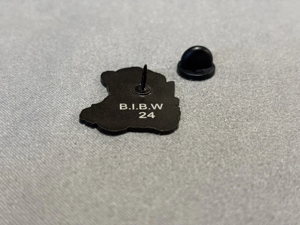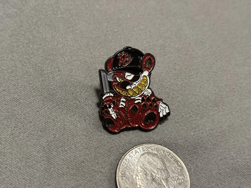 Pinzcity Sitting Bear Scare Bear Hat Pin Red Black Gold Bring It Back Wed #24