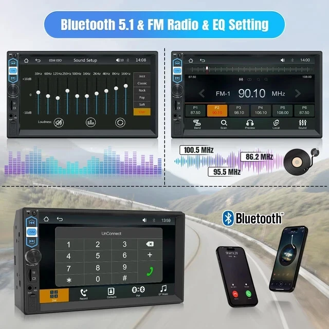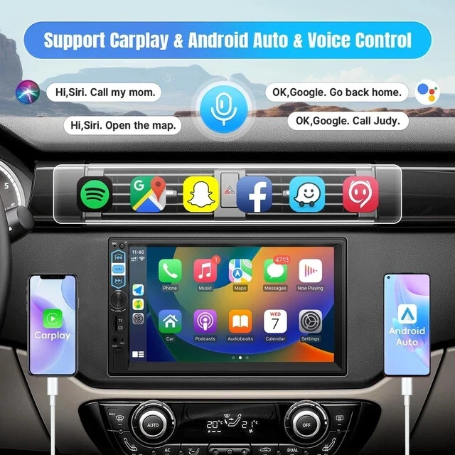 More Features: ◆ 7inch HD Touchscreen Stereo: The double din radio is designed with a pixels 1024x600 HD display, you can enjoy responsive touch feeling with your fingers. Support 1080P video playback on the stereo monitor. ◆ Support with Apple Carplay: Connect with your phone via USB cable that make phone calls,access your music,send and receive messages,get directions. Also can be done through Siri. ◆ Support Android Auto: After connecting through the original mobile phone data cable, you can access Google Maps navigation, play music, make calls, view information. ◆ Phone Mirror Link: Our car audio receivers mp5 player adopts advanced mobile mirroring technology, via USB cable connection, you are able to access high quality pictures, gps navigation, messages, video and music in the car. ◆ Bluetooth 5.1: The car stereo double din uses the latest version 5.1, fast transmission speed, higher stability, answering/making calls, hands-free without interference. ◆ Rear View Camera : Package includes a rear backup camera. The double din car stereo with backup camera takes safety to another level by shut down other apps every time you put your car in reverse to see the rear surroundings on your screen. ◆ FM Radio: Users can automatically and manually search for channels, there are 18 preset stations, and you can save your favourite stations. ◆ 5 Modes Input: Phonelink, USB device, TF card, Aux insert, Front camera. If you have a DVD player in your car, just connect your DVD to the video input interface of this apple carplay radio head unit, the unit will serve as a display screen. ◆ Stylish LED Buttons: 7 colors which switch automatically with the possibility to set a unique one of your choice, and a stylish design for this multimedia system LED buttons!(Blue/Green/Cyan/Red/Magenta /Yellow/White/Auto) ◆ Time Setting: Set your time freely, the time format as 12-hour or 24-hour. ◆ SWC: Car radio bluetooth supports steering wheel control, answer/make calls with no distractions. ◆ Online GPS/Navigation: Has specific hardware solution to integrate IOS CarPlay or Android Auto into its system so that you can run iOS Maps or Google Maps/Waze on the 7 in HD touchscreen, as long as they are available on your phone. ◆ Note: The carplay stereo player is not the GPS unit. It obtains the GPS navigation function by connecting to the cellphone. Support with Apple Carplay: ◆ The current Carplay system supports the latest version of the system IOS. With Carplay, you can use online map navigation, play music, listen to the radio, make hands-free phone calls, listen to text messages and use the voice assistant "SIRI".Hey Siri - support intelligent voice assistant, while keeping your hands free for totally safe driving maneuvers! Support with Android Auto: ◆ Connect your phone to your car display and walla your Android apps show up onscreen, simple and easy. you can make phone calls, play music, GPS navigation etc, you can also use voice control through "Google". Help you eliminate distractions that cause you to lose focus on the road ahead of you. ◆ Note: Please use the original USB data cable for the connection. Otherwise, the phone may not connect normally or may not be recognized. Many of the USB cables currently on the market only have the function of charging and not the function of data transfer. Support MirrorLink for IOS & Android Phone: ◆ Let your family enjoy their favorite movie when you’re on a road trip. This car stereo with bluetooth is compatible with MirrorLink which makes it possible for you to cast movies, TV shows, and photos from your supported device and onto the bigger 7inch touch screen. Upgraded Bluetooth 5.1: ◆ 7inch double din car stereo with bluetooth support answer / make calls and be hands-free with no distractions. Listen to your favorite music services and apps with the Bluetooth wireless stream for audio. Built-in microphone, making your call more clear. Stable FM Radio: ◆ FM Radio Receiver: Tuning range: 87.5-108MHz ◆ You can choose FM1, FM2, FM3 channel band, to save 18 stations preset. ◆ Radio reception is not affected even in bad weather. Support FM Radio Function with Memory Stations. High sensitivity, the sound is very clear. EQ Setting: ◆ With its built-in 10 bands EQ adjustment, this car radio mp5 player lets you enjoy crisp and clear sounds while you drive. ◆ It also offers a wide range of multimedia input. The built-in Preset EQ allows you to choose from preset EQ curves for a variety of music styles such as Classic, Rock, Jazz, Pop, Flat, User. Steering Wheel Control: ◆ Support the built-in steering wheel control function of your car. Connect the SWC cable reserved in you car to the brown cable from the stereo hareness. Conveniently switch your songs/ volumes/ calls by the steering wheel that greatly enhances driving safety. Car Stereo with Backup Camera ◆ The double din car radio supports the rear view and will display the image automatically when the vehicle shifts into reverse. HD night vision rear view camera is included, ultra-wide viewing angle of 170 ° and a fully waterproof design, helps to park more safely and easily. We provide detailed backup camera wiring steps, very easy to install. Important Tips: Our radio size: 178mm*100mm. ①Please read our car stereo size carefully in the picture, confirming that your dash size, factory wiring harness and radio antenna adapter are suitable before ordering, if not, you need to buy a special harness, dash kit, antenna adapter extra according to your car model. ②Please read the instructions before installation and contact us with any questions about the installation. ③The unit is not android system. 【100% Customer Satisfaction Service】 - The wiring of the car stereo with apple carplay is a bit complicated, each color is connected with different functions, please compare with our picture or installation manual. If you have any questions about the bluetooth car rad
