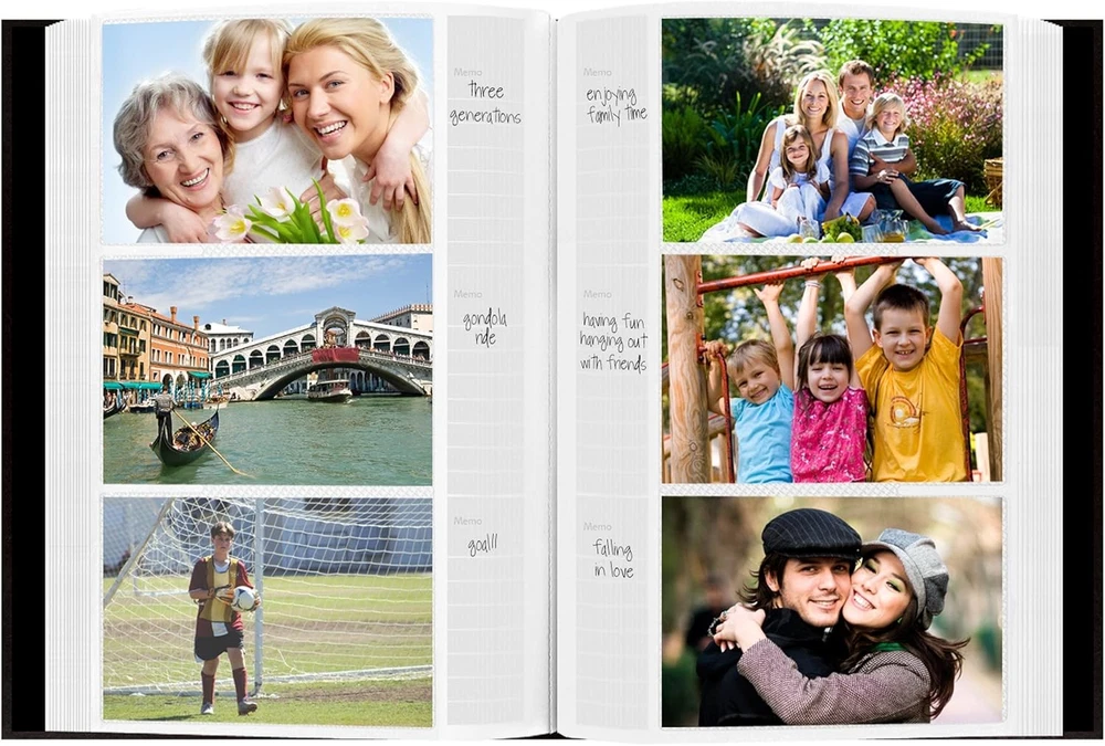 Pioneer Sewn Bonded Leather BookBound Bi-Directional Photo Set of 1, Black Product Details Brand: Pioneer Photo Albums Occasion: Graduation, Engagement, Father Color: Black Material: Leather Specific Uses For Product: Photo Album Recommended Uses For Product: Photo Album Target Audience: Unisex-Adult Special Feature: Memo writing area Style: Photo Album Pattern: Solid Shape: Rectangular Product Dimensions: 9.25"L x 2"W x 14.13"H Occasion: Engagement, Graduation, Father, Valentine's Day Pages: 3 Frame Type: Transparent Size: Set of 1 Number of Pieces: 1 Max Input Sheet Capacity: 300 Manufacturer: Pioneer Photo Albums Item Weight: 3.05 pounds Item model number: CLB-346/BK Is Discontinued By Manufacturer: No Assembly required: No Batteries required: No European bonded leather cover Holds 300 photos up to 4"x6" Optically clear pockets Memo writing area Photo Safe: Acid, lignin and PVC free This sewn European bonded leather photo album features a deluxe raised rounded book style spine. It holds 300 photos up to 4"x6" in optically clear pockets with a shaded background and a memo writing area. Photos are displayed three per page. Album measures 14.125"x9.25"x2". Photo safe: Acid, lignin and PVC free.