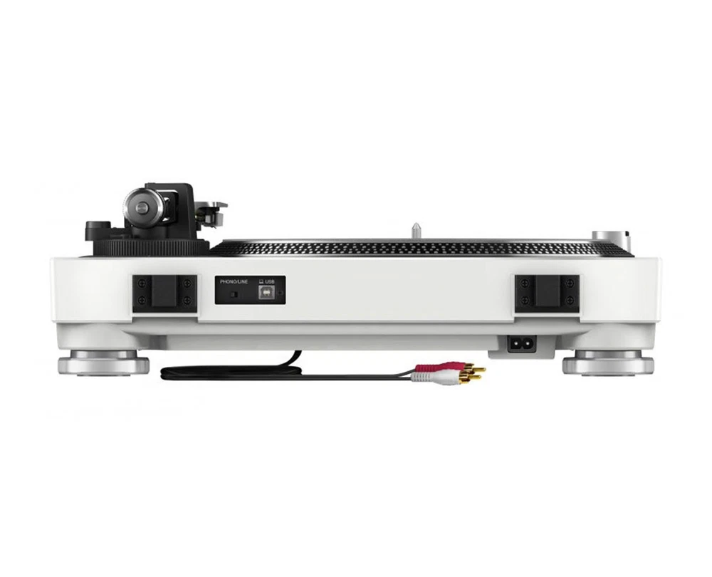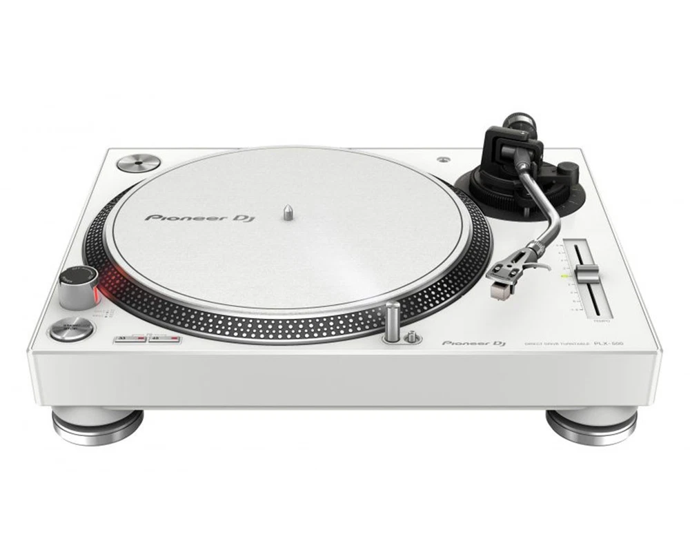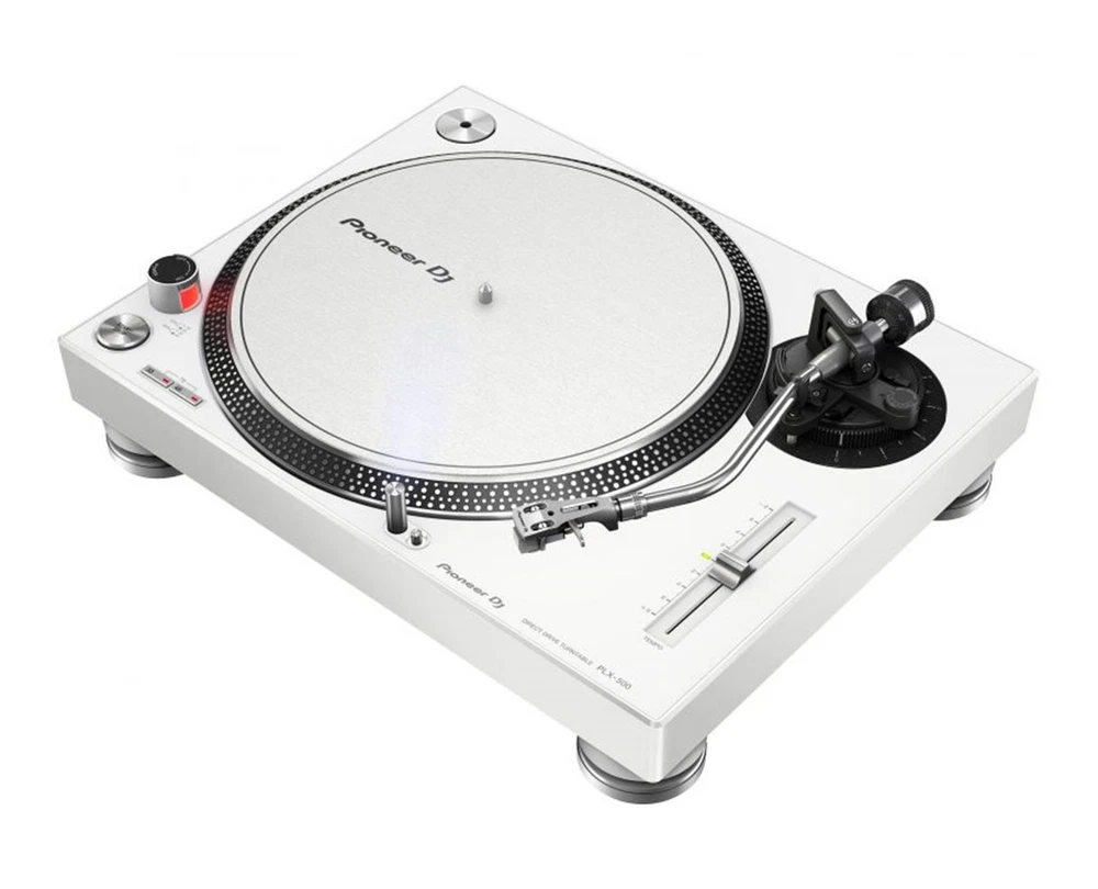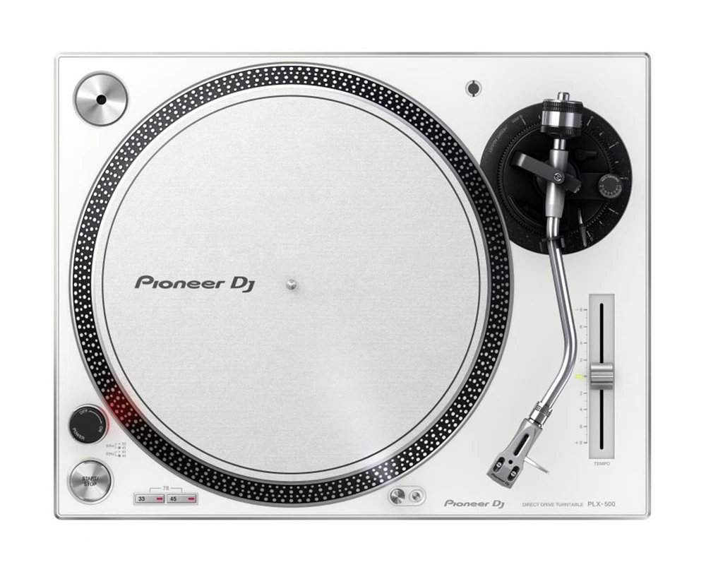 ProAudioStar DJ GEAR INSTRUMENT GEAR LIVE SOUND RECORDING MICROPHONES HEADPHONES ACCESSORIES SOFTWARE LIGHTING BUNDLES Authorized Dealer - Full Warranty Pioneer DJ PLX-500 White Direct-Drive Vinyl Turntable PLX500 PLX500W Direct-Drive Vinyl Turntable - BRAND NEW - Description Go Vinyl The PLX-500 inherits the layout of the PLX-1000 professional turntable and produces a warm, clear analogue sound. The perfect deck if you want to start playing with vinyl or if you just want to listen to your record collection at home. Solidly built with excellent vibration damping and precise audio playback, this high-torque deck has a USB out so you can make digital recordings of your vinyl collection in our free rekordbox software. You can also combine the PLX-500 with the rekordbox dvs Plus Pack, a compatible mixer and the RB-VS1-K Control Vinyl to play and scratch with digital files. Excellent Sound Design Just like the PLX-1000, the PLX-500 is built to produce a high-quality vinyl sound. The shortest possible audio routing from the stylus to the outputs reduces distortion, while the phone/line output switch lets you connect directly to your sound system or to powered speakers with no need for an external amplifier. Easy Digital Recording Record your vinyl collection to high-quality digital files by simply connecting the turntable to your PC or Mac via the USB out. Smooth Dj Play Use the PLX-500 to mix and scratch your vinyl records or combine the turntable with rekordbox dvs, a compatible DJ mixer and the RB-VS1-K Control Vinyl to play and perform with your digital files. Cover Art Display Put your record covers on display while listening to your vinyl thanks to the sleeve stand inside the dust cover. Features/Specs Slip mat Dust cover with jacket stand Adapter for 45 EP records Head shell (with cartridge) Balance and shell weights Audio conversion cord: 1 Stereo pin plug (female) 1 Stereo mini plug (male) USB cord Width : 450 mm Height : 159 mm Depth : 368 mm Drive Method : Servo-type direct drive Platter : Aluminium, die-casting diameter: 332 mm Motor : 3-phase, brushless DC motor Braking System : Electronic brake Rotation Speed : 33⅓, 45, 78 rpm Rotation Adjustment Range : ±8 % Wow and Flutter : < 0.15% WRMS Signal-to-Noise Ratio : 50 dB Starting Torque : > 1.6 kgf・cm Start Time : Within 1 sec (at 33⅓ rpm) Arm Type Universal type S-shape tone arm Gimbal-supported type bearing structure Static balance type Overhang : 16 mm Effective Length : 230.5 mm Tracking Error : Within 3° Height Adjustment Range : 6 mm Stylus Pressure Variable Range : 0-4 g (1 scale 0.1 g) Proper Cartridge Weight : < 9.5 g Cartridge type : VM Outputs : 1 PHONO/LINE (RCA) USB : 1 USB B port We are authorized dealers for all these brands. Click a logo to see our listings. ProAudioStar is also not responsible for any taxes, local duties, or fees outside of the USA and those are not included in the sale price or ship charge. If an item is refused by the buyer, ship costs to and from the destination in which the item was shipped to are not refunded. Please note the cost of return shipping is usually double of what the original ship cost. Shipping is not free to HI, AK, and PR. FREE SHIPPING ONLY TO THE LOWER 48 STATES. We provide free shipping to the contiguous 48 United States, on most items. Shipping fees to ALL OTHER LOCATIONS will be calculated individually and added to customer invoices. ProAudioStar is also not responsible for any taxes, local duties, or fees outside of the USA and those are not included in the sale price or ship charge. In the event that the customer refuses a shipment, all shipping costs to and from the country or State in which the item was shipped to are not refunded. Please note, in some cases return shipping can cost as much as double the original ship cost. We operate a 30-day return period. Items must be returned with all original packaging as well as all included items. Items that are not returned in original, resalable condition are subject to a 15% restocking fee. We charge a 15% restocking fee on returned items only if the item is clearly used and or the packaging is tarnished. A 10% re-stock is more likely if the unit comes back in mint condition. The ship cost we paid to ship your item will be deducted as well. In some cases restock fees and ship costs can be applied as a store credit. We will exchange a defective unit for the same unit within the 30-day period. After that period, you will have to work directly with the manufacturer for warranty service. Items that can not be returned include: software, units with contents or packaging that is damaged/missing, and items that are considered for personal use (such as earphones, headphones, microphones, instrument mouthpieces, harmonicas or other items that you wouldn't want to purchase if someone else had previously used them). Also, Items which we do not normally stock (i.e. "Special Orders", discontinued products, close-outs, used products, etc.) are non-returnable. We strongly suggest that you check your order after receiving it to be sure that it is in proper working order. Please contact us for a Return Authorization before returning any items.