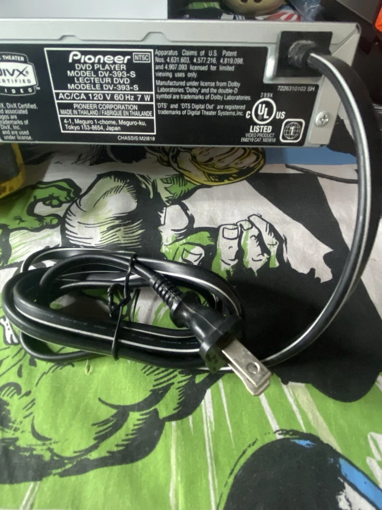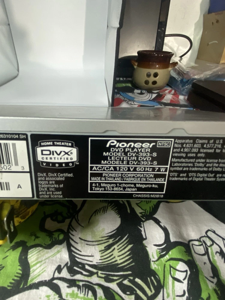 Playable Media Format:DVDConnectivity:Composite Video RCAType:DVD PlayerMPN:DV393Brand:PioneerRegion Code:DVD: 1Recordable Media Format:CD-RWModel:pioneer DV-393
