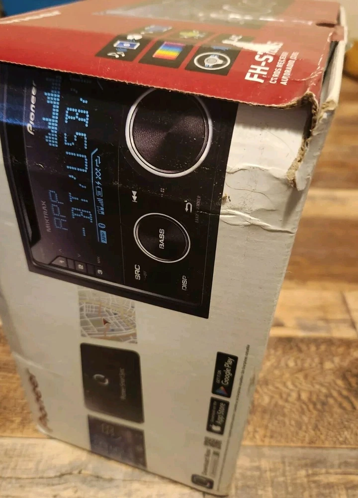 The Pioneer FH-S720BS is a versatile 2 DIN CD Player with Bluetooth connectivity, iPhone and Android compatibility, Pandora and Spotify support, and AM/FM radio. It features a front panel auxiliary input, front USB input, steering wheel control, selectable crossover network, subwoofer control, and a 6-channel output with 4-volt front, rear, and subwoofer capabilities. Additionally, it is equipped with a variable color illumination, MOSFET amplifier, and Pioneer's Smart Sync App for multimedia functions. Box does have some damage but none on the radio itself.