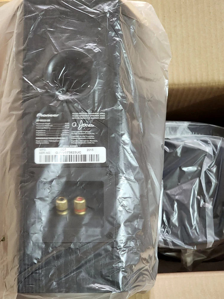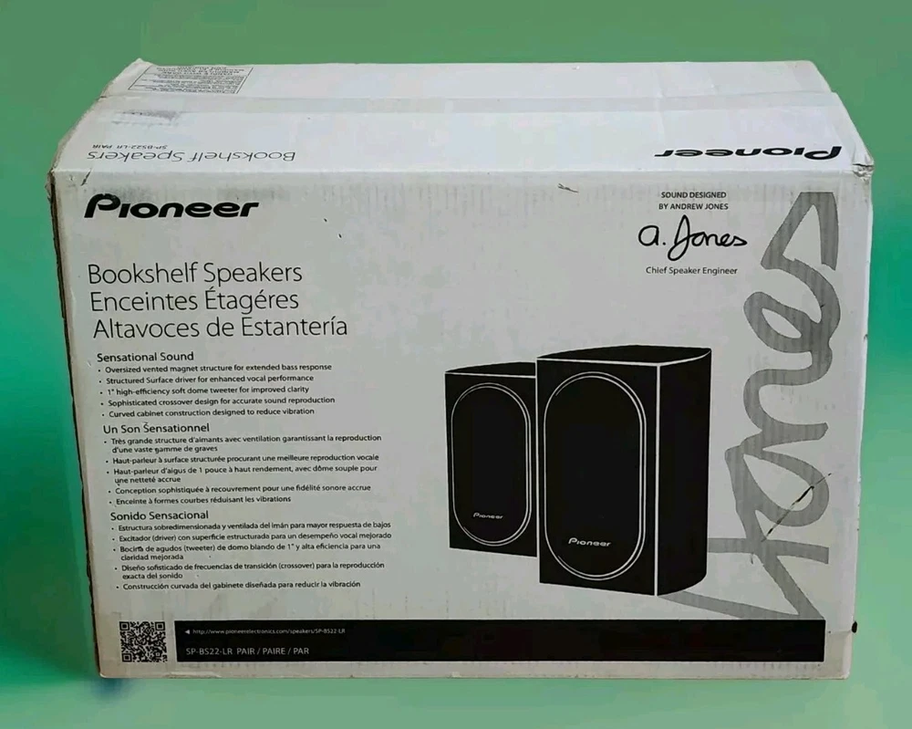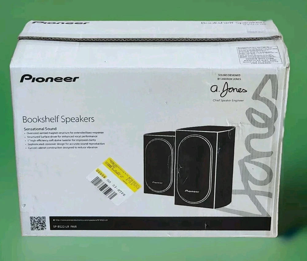 These speakers have never been used. They are still in plastic. ITEM DESCRIPTION: From speaker designer Andrew Jones comes a collection of speakers that bring professional-quality sound to your living room. These highly-acclaimed bookshelf loudspeakers deliver on sound, creating an immersive listening experience. HOME LISTENING. Whether you use them as stereo speakers or part of a multi-channel home theater system, these speakers can handle 80 watts to deliver wide frequency response and sophisticated sound quality, regardless of the source. CURVED DESIGN. These speakers utilize a true curved cabinet design. Not only aesthetically pleasing, this stiffer design reduces standing sound waves inside the cabinet, resulting in high-performance and exceptional sound quality. FEEL THE BASS. A structured surface over the 4-inch woofer with oversized magnets improves rigidity and bass accuracy. A vented pole piece also improves bass response from the same size woofers in previous models. TWEETER. To widen the sweet spot of the 1-inch High Efficiency Soft Dome tweeter, we’ve engineered a custom wave guide. Increasing tweeter efficiency, together a 6-Element Complex Crossover, allows the SP-BS22-LR’s play louder using less power.