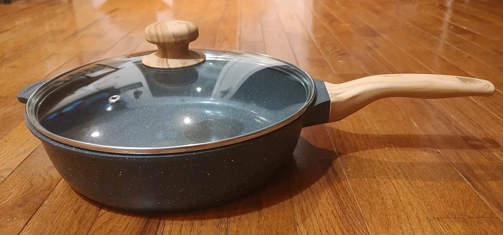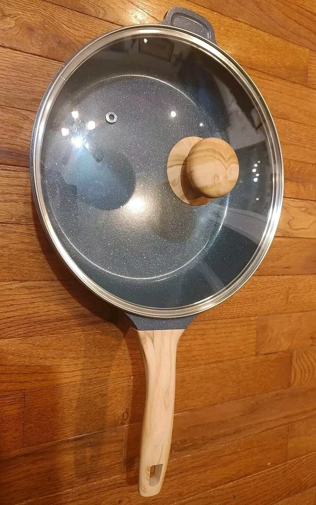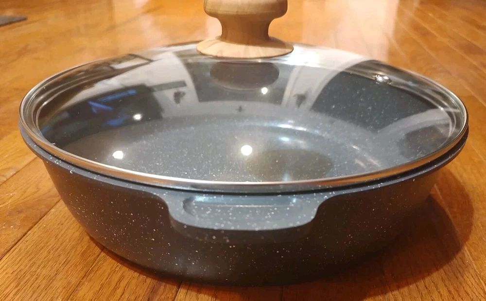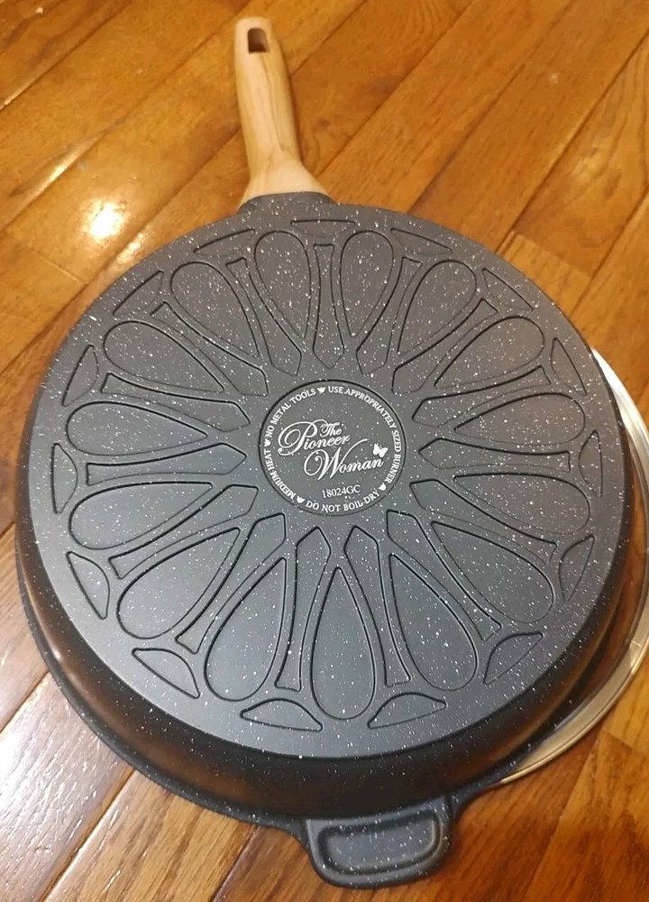 Pioneer Woman 4 Qt. Skillet Charcoal Speckle Cast Aluminum W/ Lid, New, *No Box, new from opened boxed set.