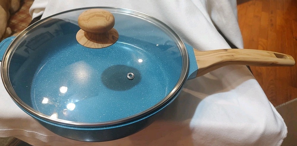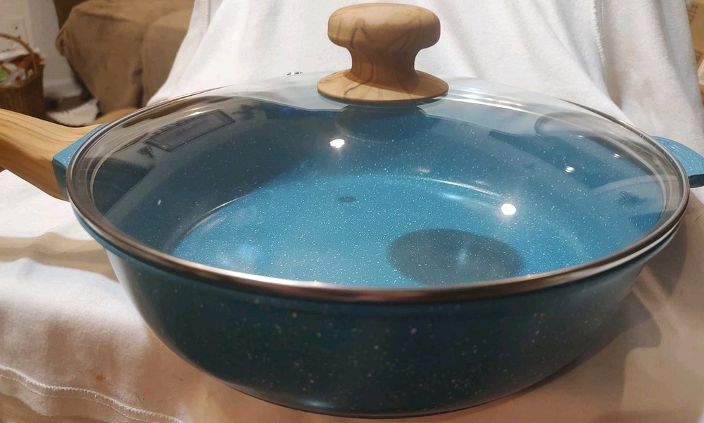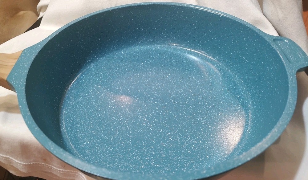 Pioneer Woman 4 Qt. Skillet Teal Speckle Cast Aluminum W/ Lid, New, *No Box, new from opened boxed set.
