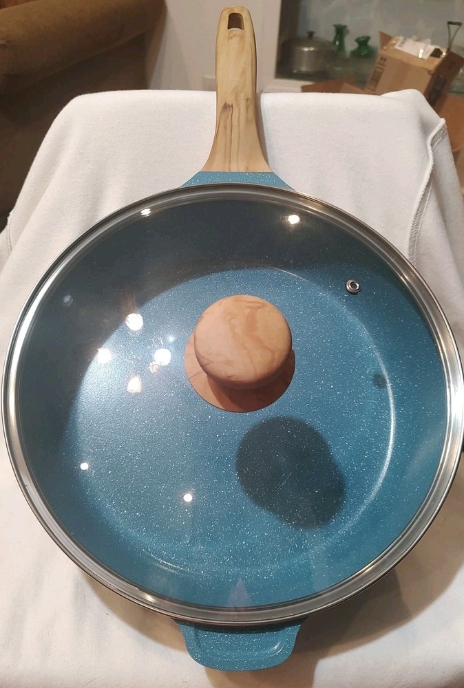 HomePioneer Woman 4 Qt Teal Speckle Cast Aluminum Skillet with Lid No Box New