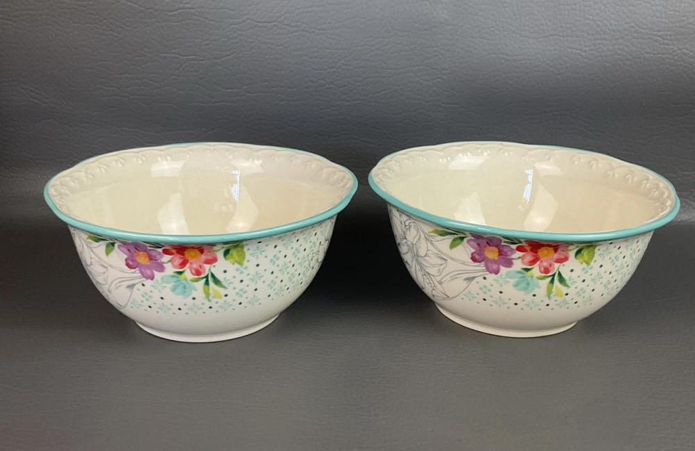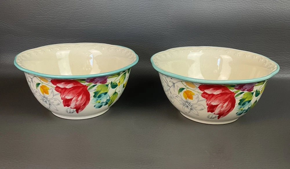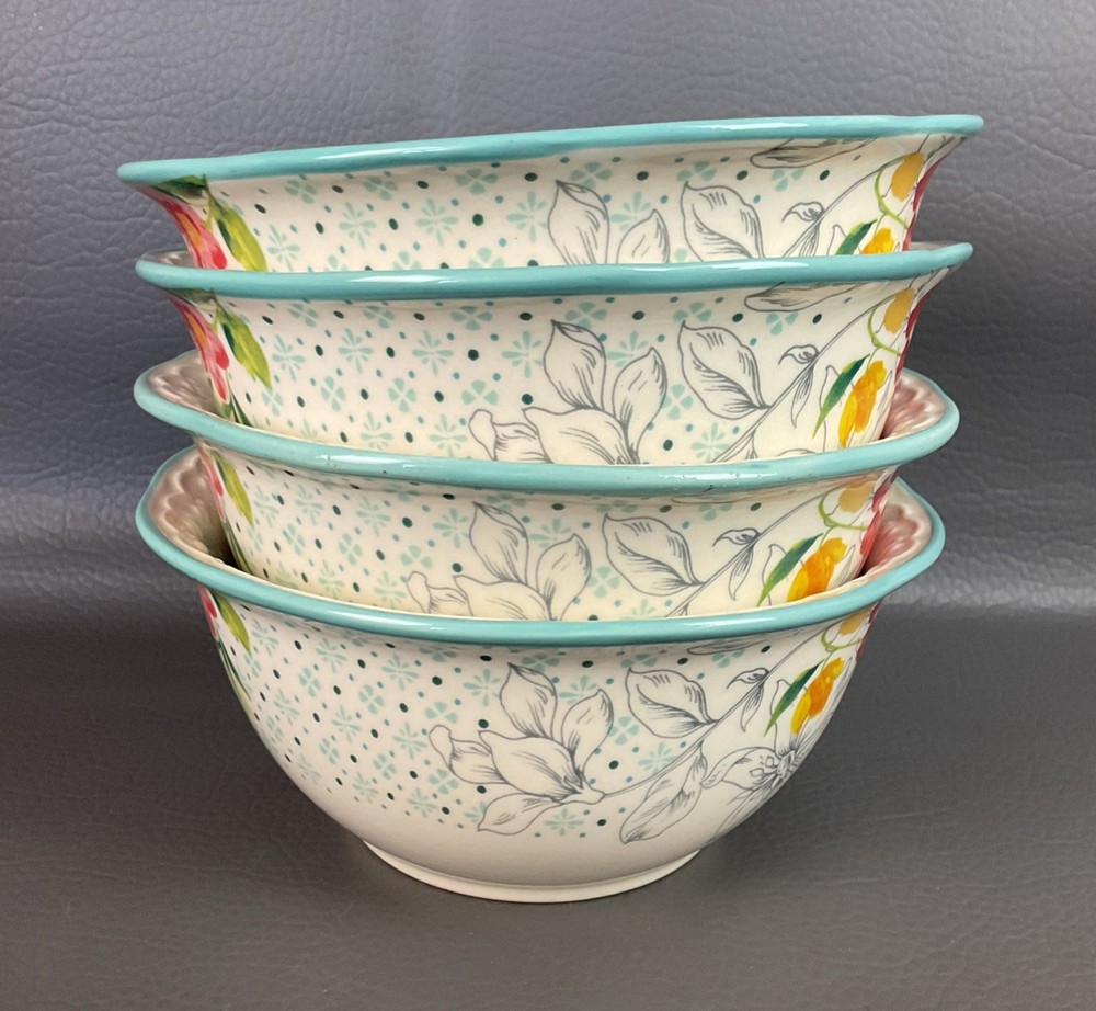 The Pioneer Woman Blooming Bouquet Ceramic 6.5" Cereal/Soup Bowls Set 4 is a charming addition to any kitchen or dining table. Featuring a floral pattern and a multicolor design, these round bowls are microwave and dishwasher safe for easy use. Perfect for all occasions, these bowls are ideal for teens and adults alike, with a country style that fits well with a garden or flower theme. The set includes four original pieces from the Pioneer Woman brand, each with a 6.5-inch diameter and a simple yet elegant design that is sure to impress.