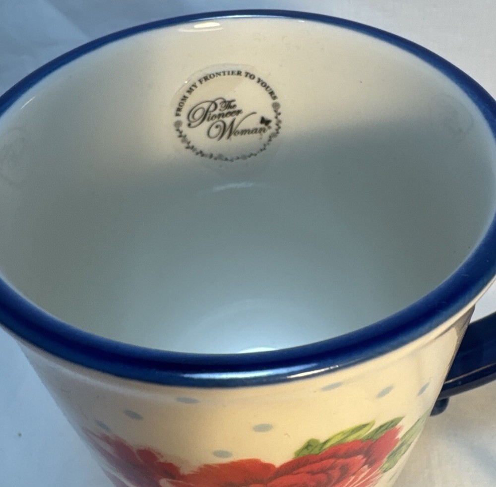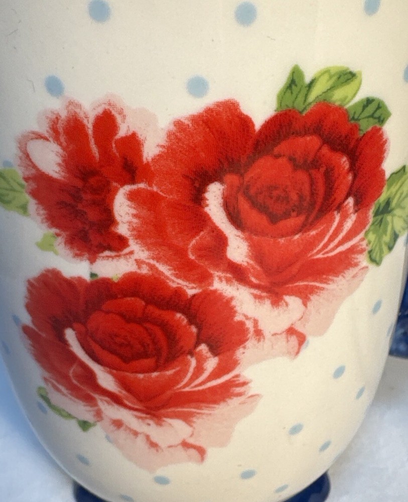 The Pioneer Woman Heritage Floral 18 oz. Mug Coffee Tea Roses Polka dots In excellent condition See photos