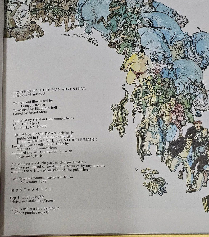 Pioneers Of The Human Adventure Vintage Graphic Novel by Francois Boucq 1st Printing. 1989, Catalan Communications, First English Printing. Extremely Rare, low print run. Condition is VG-F. Check out the photos for condition details. TAGS: COMIC BOOK COMICS COLLECTIBLE COLLECTOR RARE SCARCE Marvel DC Dark Horse Image Valiant independent small press foreign Catalan Communications pioneers Of The Human Adventure Francois Boucq