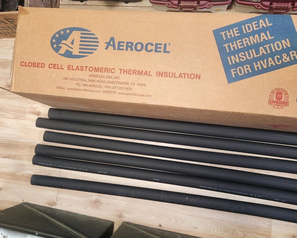 (6-pack) The product is a 6 ft length of Aerocel Thermal Foam insulation designed for 3/4 inch pipes. It is made of black foam material and is suitable for use with copper, PVC, PEX, and AC pipes. Manufactured in the United States, this insulation foil comes in a pack of 1 and provides efficient thermal protection for pipes in various industrial and commercial applications. This is great pipe installation for 3/4" copper pipe, AC lines, pvc, pex, cpvc, metal, stainless steel pipe, gas lines, furnace lines, cast iron, or regular pipe lines. This product says 7/8" x 1/2" on the side. The inside diameter (ID) of this product is 7/8", if it was 3/4", it would not slide over the piper you install it on. This product fits 3/4" pipe regardless of material. Product dimensions: 3/4" (inside diameter) x 6ft long x 0.35" thick material. I have every style and size of installation avaliable. Please send me a message asking for a size. I guarantee I can get it. They all come in 6ft length. Message me when ordering multiple. Much cheaper shipping rates for more quantities. (6-PACK)