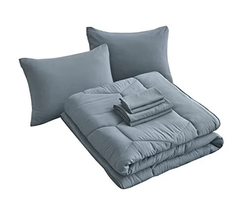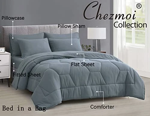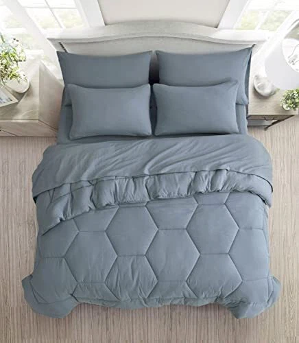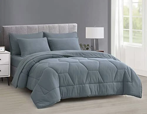 Menu 1. We require immediate payment. 2. We currently accept payment via eBay managed payments only. 3. Once payment is cleared, we will dispatch your shipment within 1-3 business days. Please refer to the "Shipping" tab for more information regarding shipping speed to your destination. Piper Full Bed in a Bag 7-Pieces Honeycomb Hexagon Quilted Soft Washed Double Brushed Microfiber Comforter with Sheets Lightweight All Season Bedding Set (Full, Dusty Blue) Product description Piper 7-Piece Bed in a Bag Comforter Set Includes: 1 Comforter, 2 Shams, 1 Flat Sheet, 1 Fitted Sheet, 2 Pillowcases Full/Double Size Measurements: Comforter 86" x 86", Shams 20" x 26", Flat Sheet 81" x 96", Fitted Sheet 54" x 75" +14", Pillowcases 20" x 30" Features a honeycomb geometric hexagon stitch pattern that exhibits an modern casual look and feel. An attractive crinkled effect fabric formed by stone-wash which enhances the aesthetics of the. Included are matching solid color sheet set pieces to easily pair with your décor. The fitted sheets are made with 360 degrees elastic cord with deep pockets to fit mattresses up to 14". Made of 100% microfiber polyester, the fabric is 95 GSM which indicates a higher thread density for a stronger, more durable fabric with 220 GSM poly filling. The fabric is also brushed to create a super soft and smooth velvety texture making this a versatile lightweight feel, suitable for year-round use. Easy Care - Machine washable in cold water, tumble dry low, do not bleach Made in OEKO-TEX Standard 100 factory, an independent certification system that stands for customer confidence by ensuring textiles are tested for harmful substances and meets high product safety and environmental standards PLEASE MESSAGE US IF YOU HAVE ANY OTHER QUESTIONS, AND MANY THANKS FOR READING ALL OF THIS. Copyright ©#. All Rights Reserved.