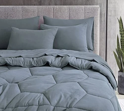 Item Length: 86 Seasons: All, Summer, Fall, Spring Style: Modern Material: Microfiber gtin13: Does Not Apply MPN: Does Not Apply Fabric Type: 100% Microfiber Polyester Date First Available: November 22, 2022 Brand: Does Not Apply Item dimensions L x W x H: 86 x 86 x 0.75 inches Item Height: 0.75 Item model number: Piper-Com-Blue-Full Type: Does Not Apply Included Components: Pillow Shams, Pillowcases, Comforter, Fitted Sheet, Flat Sheet Product Dimensions: 86 x 86 x 0.75 inches Item Width: 86 Theme: Fashion Product Care Instructions: Machine Wash Number of Pieces: 7 Item Weight: 8.67 pounds Color: Dusty Blue, Honeycomb Hexagon UPC: 840079151858 EAN: Does Not Apply Size: Full Pattern: Solid Manufacturer: Green Living Group