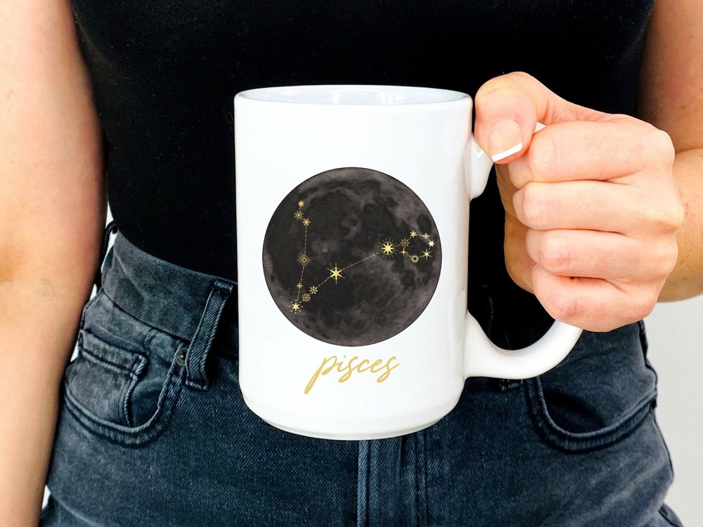 Pisces Coffee Mug With Celestial Constellation Design Pisces Coffee Cup Pisces Product Details.. This high quality 11oz. ceramic white mug has a premium hard coat that provides crisp and vibrant color reproduction sure to last for years. Perfect for all hot & cold beverages. The highest quality printing possible is used. It will never fade no matter how many times you wash it. Material: 100% Ceramic. Print both sides. Dishwasher and Microwave Safe. High Gloss + Premium White Finish. Printed in the U.S.A. Personalized & Custom. We support personalized and custom mug to add custom, when placing an order, you can add notes to the "order note" in shipping address section. Also you can contact us directly via message. Shipping Info. Ready to ship in 1 to 2 business days, All products are made-to-order and proudly printed in the United States. Shipped by USPS and DHL, You will receive your order in 5-7 days. Replace & Refund. All products are defective during shipping broken, chipped will be replaced free of charge. You are not satisfied with the product, we will refund 100% money to you. If any other issues arise, please do not hesitate to message, we would be more than happy to assist you.
