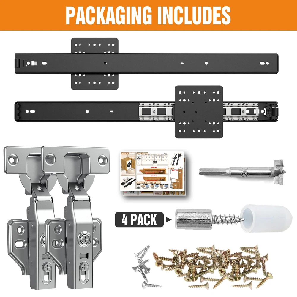 Specialty Cabinet Hardware for Disappearing Doors Advantages: Pisman Pocket Door Slides have cushioning Pad and solid steel Ball,ensuring durability and noiseless.Pocket door slides allow doors to slide seamlessly into the wall cavity, eliminating the need for traditional door swings that can take up valuable floor space Sleek and Modern Aesthetics: Pocket doors with smooth-gliding slides offer a sleek and modern look that can enhance the overall design of any room. They provide a clean, uninterrupted line of sight, making the space appear larger and more open Application: Can be used in both inset and cabinet door applications.Pocket Door Slides offer offer a sleek and modern look that can enhance the overall design of any room Easy installation: Offer your clear and simple instruction,pocket door slides can be installed relatively easily, even by DIY enthusiasts Supplied with: 2 slides,2 clip on hinges,forstner drill bit,positioning Screw and some screws
