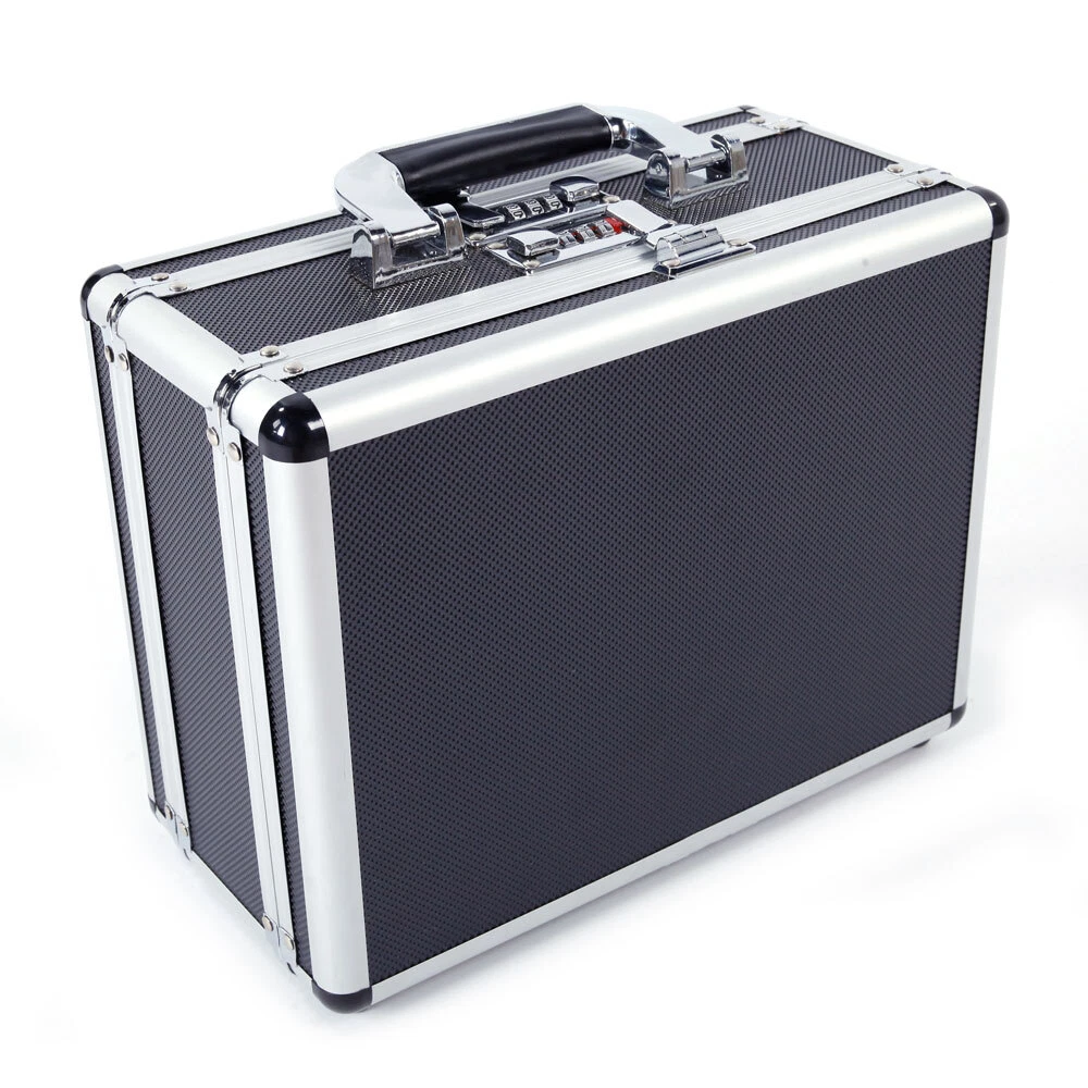 Introductions: With the latest technology, this Aluminum New Framed Locking Gun Pistol HandGun Lock Box Case is made of aluminum & ABS & foam material, meaning you can trust that the case is incredibly durable. This case features digit combination locks, allowing maximum security for your guns. What's more, the safe comes with a high density sponge lining in the interior of the case that provides surrounding support for your guns. With so many advantages, what are you still waiting for? Features: 1. Foam inserts to protect guns from Damage 2. Non-slip handle for easy and comfortable grip 3. Digit combination locks for maximum security 4. Anti-skid bullet feet for case stability in vertical position 5. Flexible switch for ease of open 6. Made of durable aluminum & ABS & foam material Specifications: 1. Material: Aluminum & ABS & Foam 2. Color: Black 3. Dimensions: (11.81 x 5.91 x 9.05)" / (30 x 15 x 23)cm (L x W x H) 4. Weight: 2.87 lbs / 1.3 kg Package Includes: 1 x Gun Case 1 x Instruction