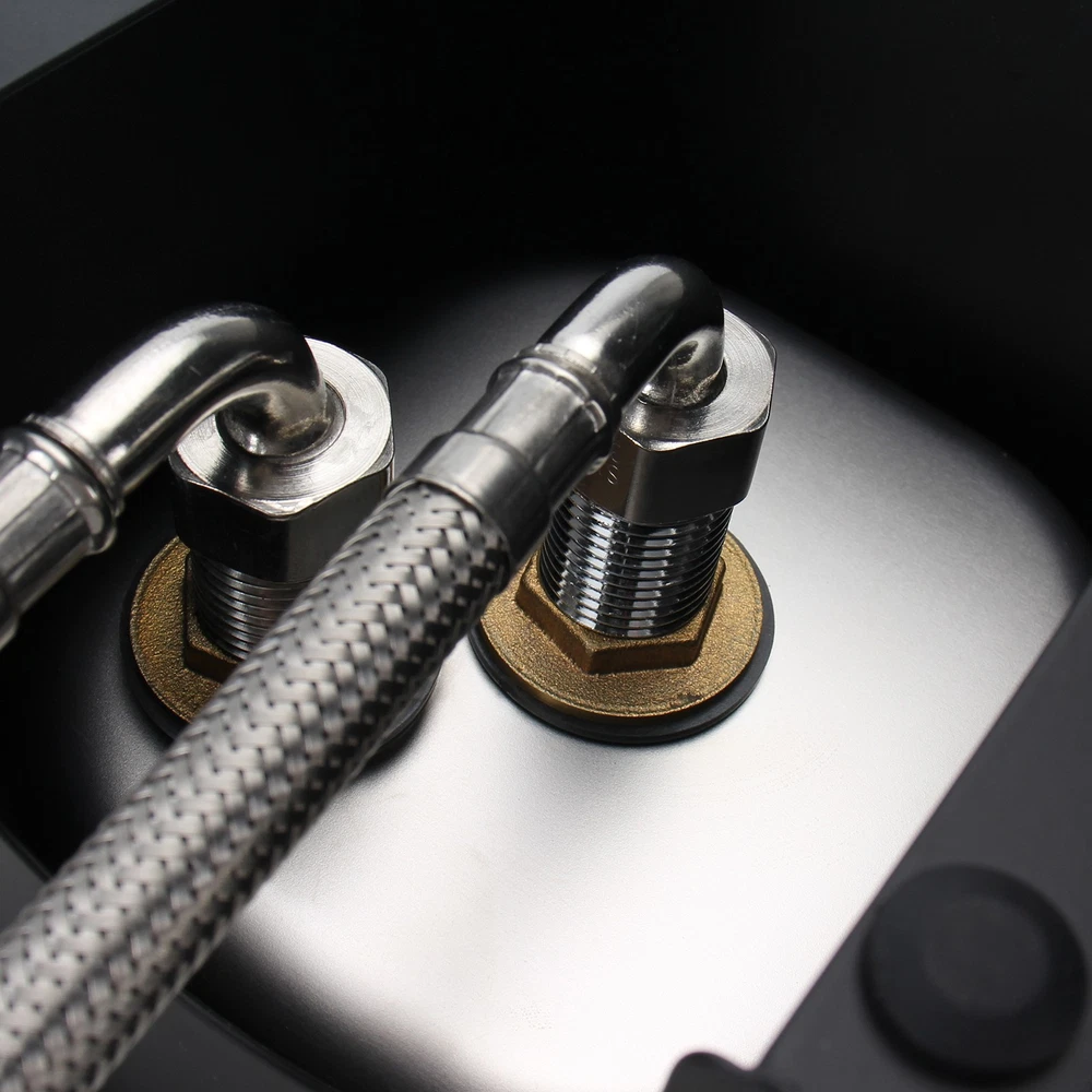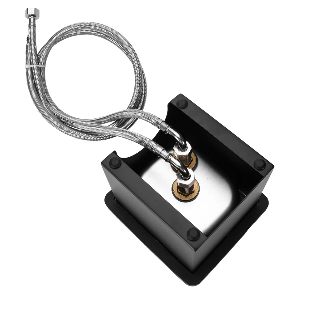 Pitcher Glass Rinser Cup Washer Multi-Angle Nozzle Cleaner Sink Two Type Install Descriptions: --Easy Cleaning: This glass washer has multi-angle water outlet cleaning head to realize multi-angle nozzle cleaning. It can quickly rinse off the residual milk inside the milk cup, saving time and effort. When you only have one free hand available, removing milk and formula residue from narrow bottles/cup can be difficult, let this glass rinser remove residue in seconds with one simple push down: Just place the cup on the nozzle rack and gently press the bottom of the cup to automatically spray water for cleaning. --Premium Material: This spray rinser sink is made of quality stainless steel and plastic, durable and sturdy, convenient and practical. --Widely Applications: This cup rinser installs into a standard kitchen countertop or sink hole and only takes a few minutes. Perfect for quickly cleaning barware, coffee mug, beer cup, milk cylinder, tea cup, etc. --Easy Installation: Simpily connect the pipes(And the Tee Connector if necassary) and put the sink back to the base, and then place it onto table, it'll be good to go. Specifications: Material: 304 Stainless Steel+Brass+Plastic Color: Black+Silver Net Weight: 3.42 lb/1550 g Overall Dimensions: 7.48x6.89x5.71 inches/190x175x145 mm Nozzle Diameter: 4.72 inches /120 mm Water hose length: 39.37 inches / 1 Meter Water hose thread: G1/2 Female Thread Package Includes: 1 x Glass Rinser 1 x Inlet Pipe 1 x Outlet Pipe 1 x 3-way Tee Connector Adapter Instructions NOT included.
