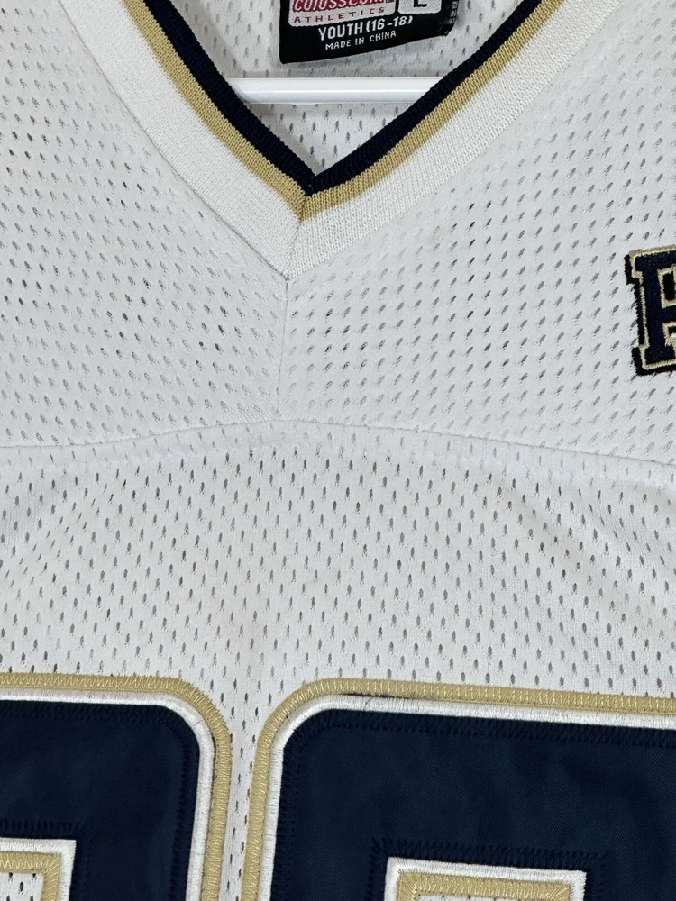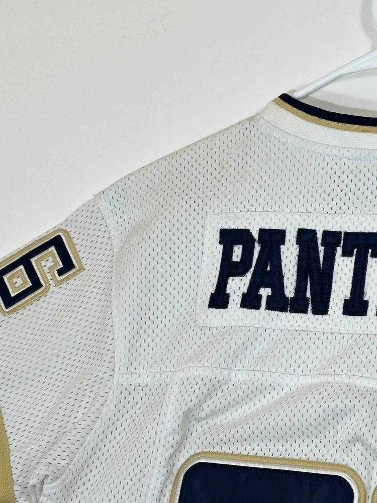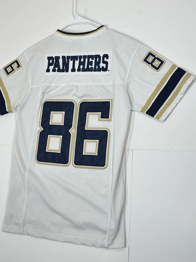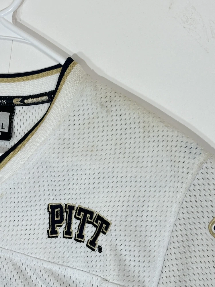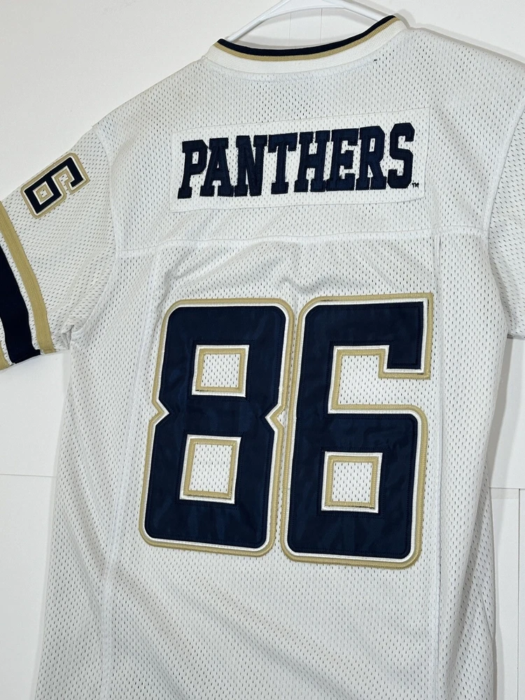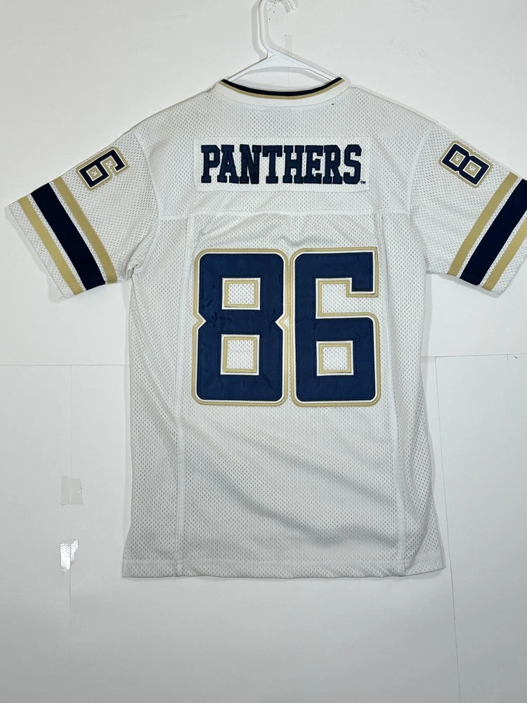 Pitt Panthers Jersey Youth Boys Large 16-18 White Stitch Logo Kids Football #86 Very decent - to - pretty good condition overall - see ALL photos very closely Jersey has light minor wear/tear overall throughout - has a couple little stains/marks on front side near middle - little bit upper portion - see ALL photos very closely for condition of the jersey Will ship with care