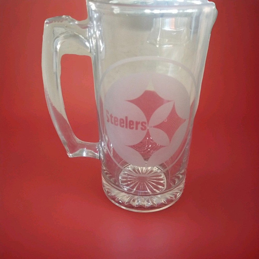 Embrace your love for the game with this robust Pittsburgh Steelers Beer Mug. A true fan favorite, the 24 oz jumbo mug is heavy-duty, etched glass designed to withstand the excitement of any sporting event. Its solid clear glass structure is complemented by a functional handle, making it an ideal choice for enjoying your favorite beverage. The mug features a dishwasher-safe design that simplifies cleaning. It's perfect for all occasions, whether you're watching the game or just enjoying a casual evening in. With its 7-inch height and 3-inch width, this mug is a versatile addition to any collection, holding up to 24 fl oz of your favorite brew.