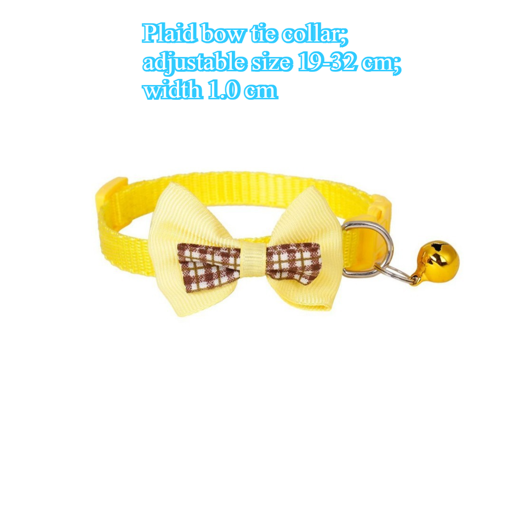 Plaid Bow Tie Cat Dog Collar - Adjustable Pet Collar with Decorative Bow