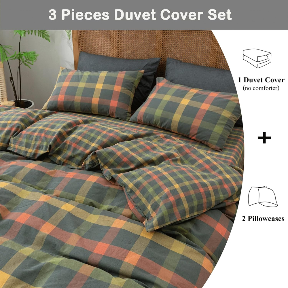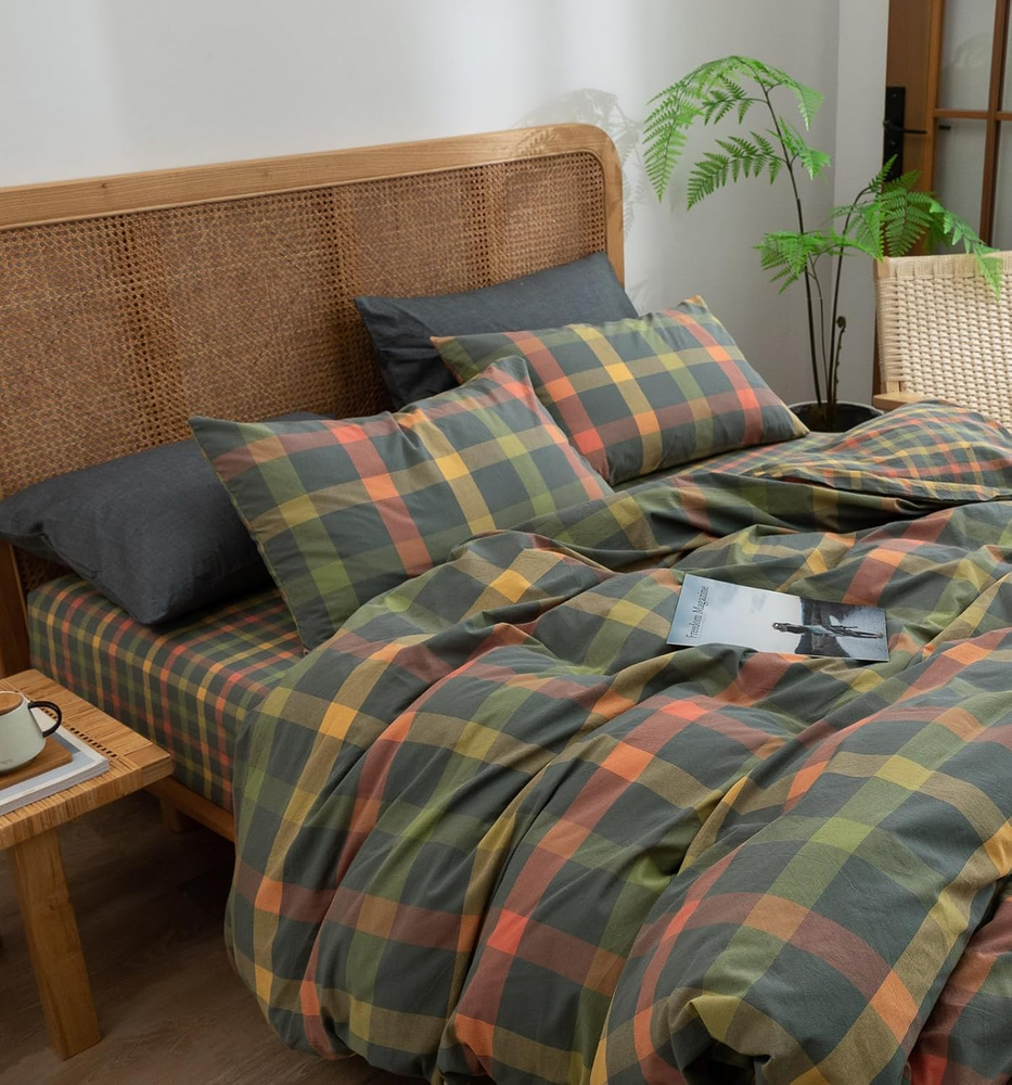 Store New Arrivals Add to Favorite View Feedback Contact Fast deliveries to the customer's home Quality customer service John Make the customers happy! Plaid Duvet Cover Set Queen Washed Cotton Reversible Bedding Multicolor Buffalo Grid Duvet Cover with 2 Pillowcases for Men Women(Orange/Grey/Green,Queen) Description 【Material】Buffalo Plaid Duvet cover made from washed cotton with high density weave,natural,breathable,fast sweat absorption,fade-resistant,definitely working for all gentle skins. 【Modern Design】A farmhouse look plaid gingham duvet covers with Orange,Grey,Green,Yellow,Red - blend together offer a classic and rustic look,colors available tend to be neutral and can easily bring a relaxed, lived-in look to any room's decoration especially the vintage style. 【Size & Package】3 Pieces duvet covet set; 𝐐𝐮𝐞𝐞𝐧: 1 Duvet Cover (90"x90") and 2 Pillow Shams (20"x26"),comforter or insert not include. 【Zipper Closure & 4 Ties】Washed cotton duvet cover with zipper closure,convenient to get your duvet in and out; 4 corner ties to keep your duvet insert in place.2 pillowcase with envelope closure. 【Easy Care】Machine wash in cold water with similar colors.Tumble dry low.Do not bleach.Cool Iron when needed after wash.Recommended washing before use.You will find the bedding set even softer with each wash. Product description Modern Reversible Colorful Plaid Duvet Cover Set More Flower Pattern Style For You Choose Add to Cart Add to Cart Add to Cart Add to Cart Add to Cart Customer Reviews 4.5 out of 5 stars 1,642 4.4 out of 5 stars 2,725 4.4 out of 5 stars 1,559 4.4 out of 5 stars 2,725 4.5 out of 5 stars 1,642 Price $85.99 $ 85 . 99 $59.89 $ 59 . 89 $52.99 $ 52 . 99 $68.09 $ 68 . 09 $68.09 $ 68 . 09 Material Microfiber Cotton Cotton Cotton Cotton Pattern Floral Plaid Flower Stripes Floral Available Size Queen/King Queen/King Twin/Queen/King Queen/King Queen/King Zipper ✔ ✔ ✔ ✔ ✔ Corner Ties ✔ ✔ ✔ ✔ ✔ Style Farmhouse Material Cotton Weave Type Percale Pattern Plaid Theme Plaid Number of Pieces 3 Unit Count 3.0 Count Batteries required No Pillowcase Quantity 2 Pillowcase Width 20 Inches Seasons All, Fall, Summer, Winter Included Components Duvet Cover, Pillowcase Item dimensions L x W x H 90 x 90 x 1 inches Item Weight 3.08 pounds Pillowcase Length 26 Inches Sham Quantity 2 Color # Multicolor Plaid Thread Count 300 Product Dimensions 90 x 90 x 1 inches Product Care Instructions Machine Wash Size Queen(1 Duvet Cover + 2 Pillow Shams) ABOUT US We offer the best prices around on high quality products. Our E-store includes media such as books, movies, music and games while offering electronics, toys, sporting apparel, clothing, tools, general home, garden items and more. SHIPPING We are always working hard to ensure your package arrives as soon as possible. Please understand that some factors like weather, high postal traffic, and the performance of shipping companies are outside of our control. We offer free shipping to the lower 48 states and ship within 2 business days of payment, usually sooner. We do not accept P.O. Boxes. Please provide a physical address. For shipping outside of the continental USA, we only use eBay's Global Shipping Program. The item is shipped to KY and then sent to the rest of the world. International customers are responsible for all duties and taxes. Continue to 'check out' to calculate costs for shipping the item to your country. Messages regarding eBay's Global Shipping Program MUST be directed at eBay EXCLUSIVELY. RETURNS We offer a 30-Day Return Policy on items in which you are not completely satisfied with. You have the option of a full-refund or an exchange of the item. No returns are available on items shipped outside of the USA PAYMENT We accept PayPal. CONTACT US This page content is yet to come Please ad us to your favorite seller and visit again later Thank You CUSTOMER SATISFACTION We try our very best to make sure every customer is completely satisfied. If there's a problem, message us! We're happy to help. WE ACCEPT