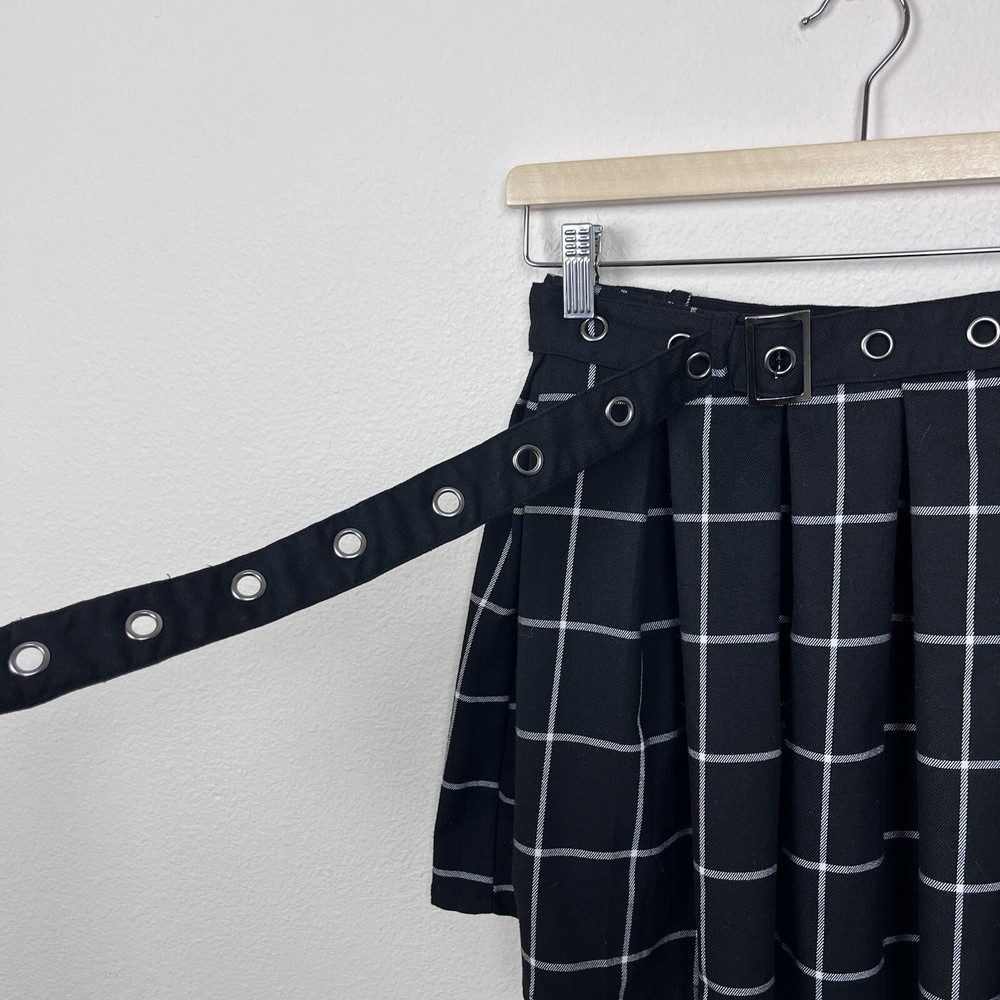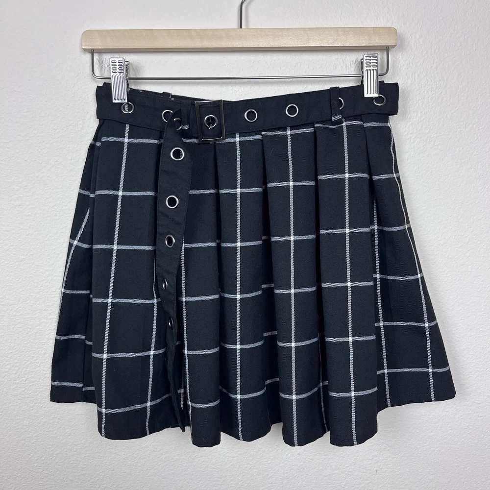 Hot Topic Womens Skirt Rayon, polyester and spandex blend Mini Pleated Belt Grid plaid Academia Preppy Schoolgirl Gothic Classic Good preowned condition Measurements in photos Size S