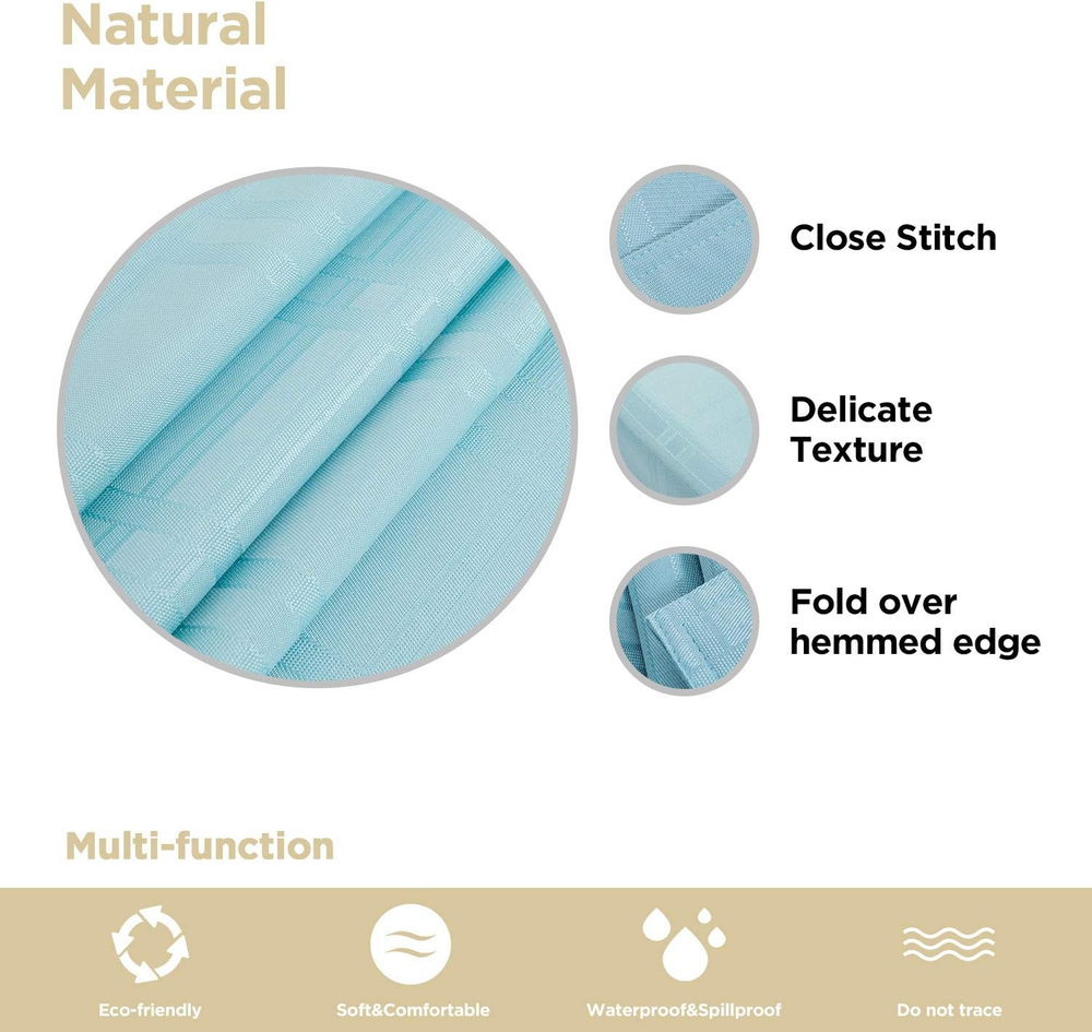 Absolutely love this tablecloth! The jacquard weave adds such an elegant touch, and the turquoise color is perfect for spring. It’s wrinkle-resistant, spill-proof, and easy to clean—just what I needed for holiday gatherings. The fabric feels premium, drapes beautifully, and fits my table perfectly. Fast shipping and great customer service too!