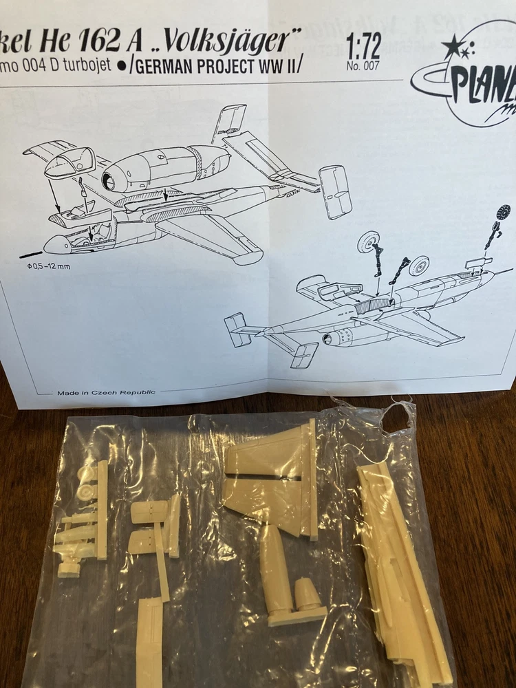 Planet Models He 162 is a great little resin cast kit. It comes with decals, a vacuformed canopy, and metal cast gear. The decals and canopy are in great condition and should make for a smooth build.