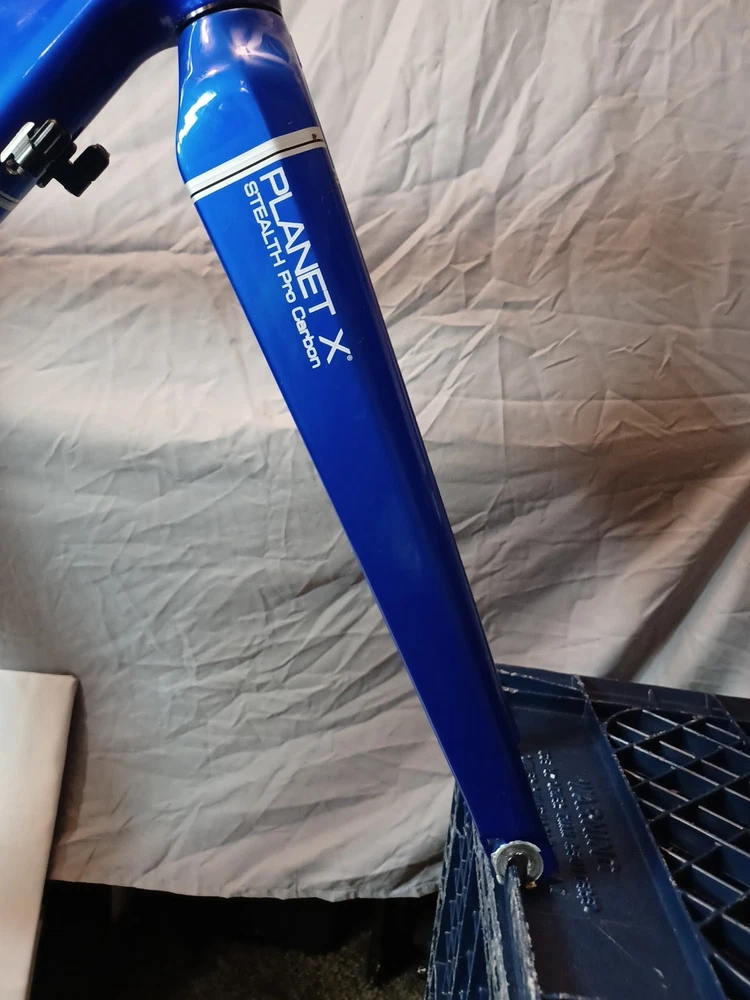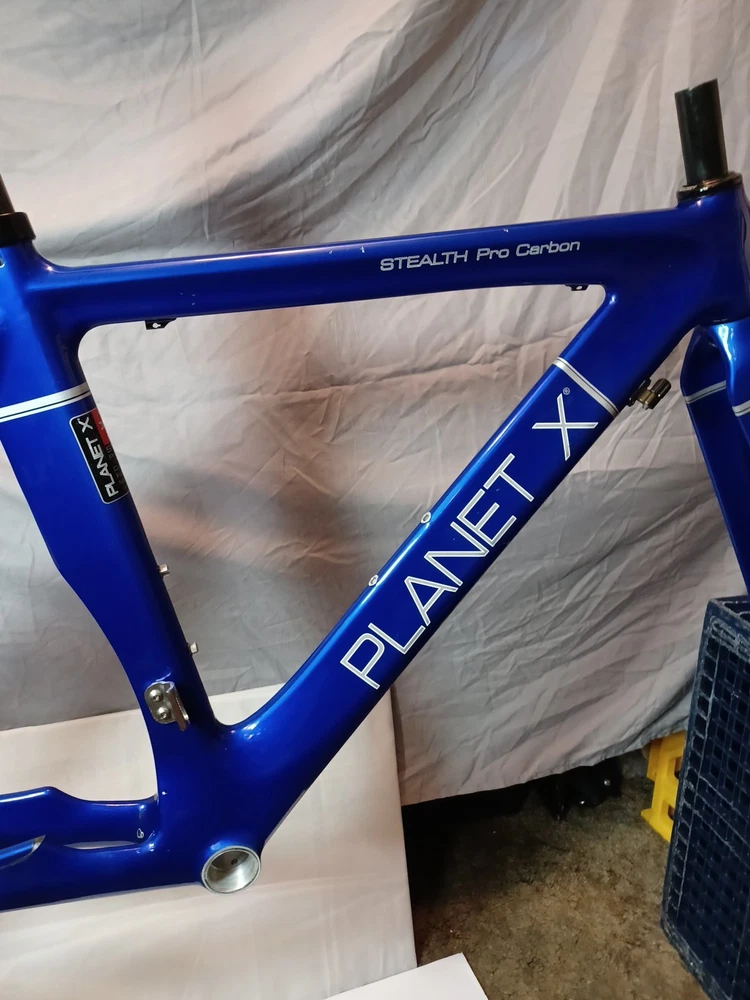 Used track frame measurements: (a) 48cm seattube, (b) 50cm toptube, (c) bb offset 6.5cm, (d) chainstay length 41cm, (g) fork center 57cm, (h) headtube lenth 9cm, (j) reach 38cm, (l) fork length 38cm. Includes: Full Carbon Monocoque Frame, Pro Race Fork, Integrated Ritchey Headset, Areo Seatpost, Micro Adjust Saddle Clamp, Seatpost Clamp, BB Shift Cable Guide, Barrel Adjustable Downtube Cable Stops, Integrated Rear Wheel Alignment Adjusters, Front and Rear Derailleur Brackets. Used track frame so there are some chips on the clear outer layer and have been sealed with a clear hardener. No penetration into the carbon fiber. Most notable is the left headtube area that has some scuffs on the clear other, no penetration and on the fork crown race, paint chip. Chainstays have some rubbing from tire and chips on the chainstay. Protective cover has been installed after the fact. See pictures and ask for more of needed because this is carbon fiber, I rarely resell carbon and when I doom confident it is sound. I've had carbon failures personally and would not sell something that I wouldn't ride. Please review all photos and listed measurements carefully. The item(s) shown and described are sold as is. Any KNOWN flaws or issues will be noted in the description. If you need clarification on measurements, have any other questions or need additional photos feel free to message me. I do my best to research and provide accurate information but mistakes are inevitable so informing me would be highly appreciated so I can edit any discrepancies. Some items are difficult to price so I'm open to all Reasonable offers, message me if the offer option is not available or if shipping is the issue and we can work something out. By placing a bid or using buy it now the buyer agrees to the following terms and conditions: - Every effort has been made by the seller to inspect, photograph and accurately describe this item's condition, however all items are sold AS-IS. - Buyer acknowledges that bicycling and outdoor sports are are potentially dangerous activities involving physical risk. It is the buyer's responsibility to ensure products are installed by a qualified professional and utilized safely--the seller is not responsible for injury/damage that may arise from the buyer's intended or unintended use of this item.