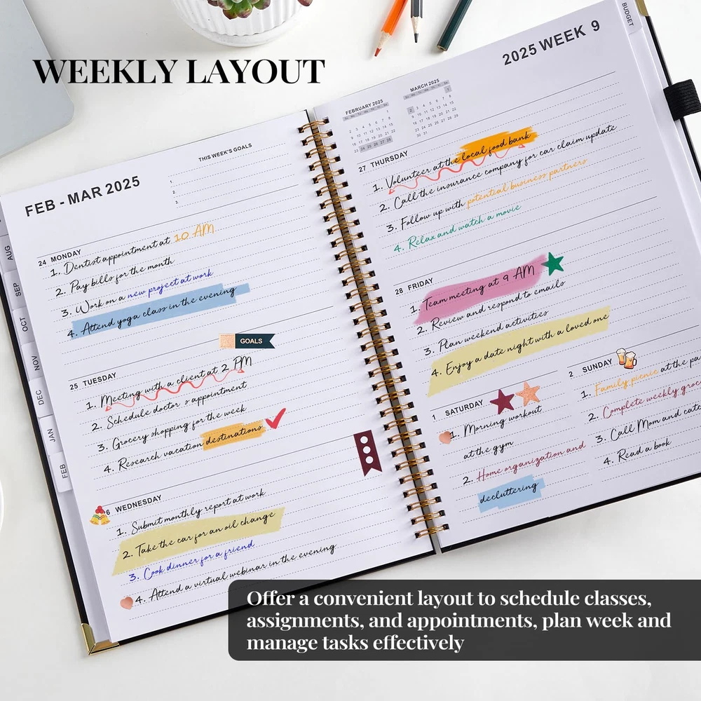 Planner 2024-2025, Academic Planner July 2024- June 2025, Daily Weekly and Monthly Planner 8.5 * 11” with Monthly Tabs, School Planner for Student/Teacher, Spiral Bound, Large -Black 12-MONTH DATED CALENDAR: The calendar 2024 planner runs from July 2024 to June 2025, allowing for comprehensive yearly planning. Include monthly calendars with space for notes, goals, and key dates spanning the academic year. Highlight important holidays, breaks, and significant events to help you stay organized and ahead of your schedule. 52 WEEKS WEEKLY LAYOUT: This 2024-2025 yearly planner design a 2-page weekly spread starting from Monday to Sunday. Provide ample lined writing space for each day to record appointments, tasks, and notes efficiently. At the top of week’s goals to help focus on goals. This layout will help you prioritize your objectives and manage your weekly tasks effectively, ensuring productivity and progress throughout the academic year. PRACTICAL ADDITIONAL PAGES: Incorporate practical additional pages in your academic planner, such as a yearly overview for 2024-2025 showcasing holidays and key dates. Include sections for important contacts and emergency information to keep essential details readily accessible in your planner. SPECIAL DESIGN: The 8.5*11.5” large student planner with 12 monthly tabs that easy for using. Opt for a spiral-bound design for easy page-turning and flexibility in your academic planner. Emboss the cover with gold foil lettering for a touch of elegance and sophistication. Enhance durability with metal protective corners, a secure binding strap, a pen loop for convenient access, and a pocket for storing loose papers or notes. Weekly planner with stickers that can decorate pages. PREMIUM FSC CERTIFIED PAPER & GUARANTEE : This academic planner for 2024-2025 is made of high-quality paper with a weight of 100gsm for a smooth writing experience and reduced ink bleed-through. Choose eco-friendly paper certified by FSC that promote sustainability and responsible sourcing practices. JUBTIC planner guaranteed that If you have any quality issues or are not completely satisfied with our planner, you can contact us through Amazon and we will resolve your issue promptly. 12-MONTH DATED CALENDAR: The calendar 2024 planner runs from July 2024 to June 2025, allowing for comprehensive yearly planning. Include monthly calendars with space for notes, goals, and key dates spanning the academic year. Highlight important holidays, breaks, and significant events to help you stay organized and ahead of your schedule. 52 WEEKS WEEKLY LAYOUT: This 2024-2025 yearly planner design a 2-page weekly spread starting from Monday to Sunday. Provide ample lined writing space for each day to record appointments, tasks, and notes efficiently. At the top of week’s goals to help focus on goals. This layout will help you prioritize your objectives and manage your weekly tasks effectively, ensuring productivity and progress throughout the academic year. PRACTICAL ADDITIONAL PAGES: Incorporate practical additional pages in your academic planner, such as a yearly overview for 2024-2025 showcasing holidays and key dates. Include sections for important contacts and emergency information to keep essential details readily accessible in your planner. SPECIAL DESIGN: The 8.5*11.5” large student planner with 12 monthly tabs that easy for using. Opt for a spiral-bound design for easy page-turning and flexibility in your academic planner. Emboss the cover with gold foil lettering for a touch of elegance and sophistication. Enhance durability with metal protective corners, a secure binding strap, a pen loop for convenient access, and a pocket for storing loose papers or notes. Weekly planner with stickers that can decorate pages. PREMIUM FSC CERTIFIED PAPER & GUARANTEE : This academic planner for 2024-2025 is made of high-quality paper with a weight of 100gsm for a smooth writing experience and reduced ink bleed-through. Choose eco-friendly paper certified by FSC that promote sustainability and responsible sourcing practices. JUBTIC planner guaranteed that If you have any quality issues or are not completely satisfied with our planner, you can contact us through Amazon and we will resolve your issue promptly. Shipping from the USA All of our products are shipped from the USA, ensuring quick delivery to your destination. Payment We offer the following payment methods: PayPal, credit card, bank transfer, and eBay's secure payment system. Free Shipping & Free Returns Shipping within the USA is FREE. Additionally, any return is absolutely free for you. Risk-Free Purchase You have the option to return an item within 30 days without any justification. We cover the return shipping costs! Fast Shipping We ship immediately upon receipt of payment. Generally, the package is delivered within 2-3 days in the USA. If it takes longer, we will contact you. Quality and Costs Made in Europe, USA, China No customs fees or additional charges Total satisfaction guarantee Invoice with declared VAT available upon request in .pdf format Feedback Your feedback is very important to us. After you pay for your purchase, you will automatically receive positive feedback from us.