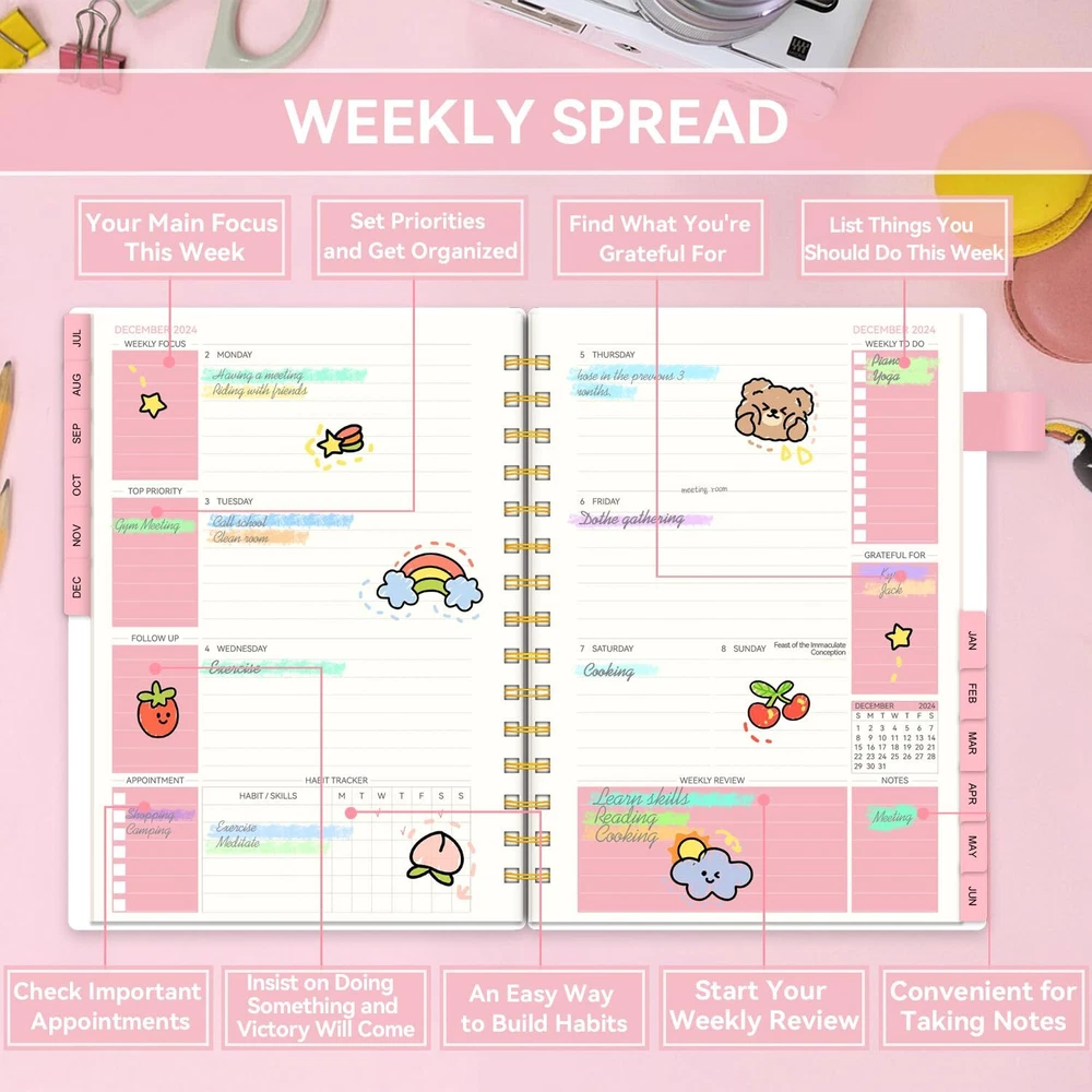 Planner 2024-2025 Weekly and Monthly, Academic Planner runs from Jul.2024 - Jun.2025, AIMPEAK Calendar Planner for Women, Monthly Tabs, Spiral Binding, Pink Garland, 5.5"x8.5" 📒Functional 2024-2025 Planner: This academic planner can help to increase your productivity and achieve your goals. Designed from Jul.2024 - Jun.2025, featuring 12 months of monthly and weekly pages for easy year-round planning. Functionally designed additional pages including 2024-2025 calendar overview, personal information, goals and plans, important dates page, 2024-2025 holiday pages, contact pages and notes pages. 📒Clear Monthly Overview: Our planner 2024-2025 contains 12 months of monthly pages, ready with monthly tabs for quick reference. Richer content contains monthly goals, to do list, reviews, major holidays listed, elapsed and remaining days noted. Keep track of important deadlines, special events and more of every month with clear organization. 📒Richer Weekly Pages: Weekly view pages contain weekly focus, top priority, follow up, appointment, habit tracker, to do list, grateful for, weekly reviews and notes, enough writing place for your detailed daily planning, appointments and activities. Stay organized and motivated each day and week, improve your productivity with this 2024 weekly and monthly planner. 📒Superior Quality:This calendar 2024 planner uses flexible cover, waterproof, can protect all the sheets inside well. The twin-wire binding helps the daily planner to stay flat when open so it's easier to write. The weekly planner contains a inner pocket to store small objects and a pen loop for convenience. High-quality acid-free paper, helps to reduce ink-bleeding and always provide great writing exprience. Excellent texture, with classic and stylish combinations of appearance. 📒After-sale Guarantee: If there are any type of quality issues or if for any reason you're not completely satisfied after receiving our monthly planner, please do not hesitate to contact us, we will be happy to solve your problems as soon as possible. Your satisfaction is our greatest motivation for improvement. 📒Functional 2024-2025 Planner: This academic planner can help to increase your productivity and achieve your goals. Designed from Jul.2024 - Jun.2025, featuring 12 months of monthly and weekly pages for easy year-round planning. Functionally designed additional pages including 2024-2025 calendar overview, personal information, goals and plans, important dates page, 2024-2025 holiday pages, contact pages and notes pages. 📒Clear Monthly Overview: Our planner 2024-2025 contains 12 months of monthly pages, ready with monthly tabs for quick reference. Richer content contains monthly goals, to do list, reviews, major holidays listed, elapsed and remaining days noted. Keep track of important deadlines, special events and more of every month with clear organization. 📒Richer Weekly Pages: Weekly view pages contain weekly focus, top priority, follow up, appointment, habit tracker, to do list, grateful for, weekly reviews and notes, enough writing place for your detailed daily planning, appointments and activities. Stay organized and motivated each day and week, improve your productivity with this 2024 weekly and monthly planner. 📒Superior Quality:This calendar 2024 planner uses flexible cover, waterproof, can protect all the sheets inside well. The twin-wire binding helps the daily planner to stay flat when open so it's easier to write. The weekly planner contains a inner pocket to store small objects and a pen loop for convenience. High-quality acid-free paper, helps to reduce ink-bleeding and always provide great writing exprience. Excellent texture, with classic and stylish combinations of appearance. 📒After-sale Guarantee: If there are any type of quality issues or if for any reason you're not completely satisfied after receiving our monthly planner, please do not hesitate to contact us, we will be happy to solve your problems as soon as possible. Your satisfaction is our greatest motivation for improvement. Shipping from the USA All of our products are shipped from the USA, ensuring quick delivery to your destination. Payment We offer the following payment methods: PayPal, credit card, bank transfer, and eBay's secure payment system. Free Shipping & Free Returns Shipping within the USA is FREE. Additionally, any return is absolutely free for you. Risk-Free Purchase You have the option to return an item within 30 days without any justification. We cover the return shipping costs! Fast Shipping We ship immediately upon receipt of payment. Generally, the package is delivered within 2-3 days in the USA. If it takes longer, we will contact you. Quality and Costs Made in Europe, USA, China No customs fees or additional charges Total satisfaction guarantee Invoice with declared VAT available upon request in .pdf format Feedback Your feedback is very important to us. After you pay for your purchase, you will automatically receive positive feedback from us.