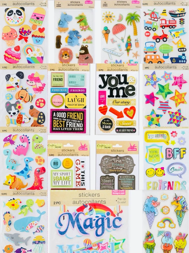 HUGE Mixed Sticker Lot | The Ultimate Kit | Qty. 2099+ Stickers | High Quality Only! Fun Assortment of Puffy, Scrapbook, Cartoons, Bubble, Pop Up and much more! Stickers For Everyone! The Pack will include 2099+ Stickers overall! I have included a large variety of pictures of the assortment available. The pictures give you an idea of what you will be receiving. Please Note: You will not receive everything pictured. Please contact me with any special requests. This HUGE Variety of fun designs stickers can be used in parties, classroom, school and home, good for reward for students, potty training, adding inside a birthday card, game activities, entertaining toddlers, etc. Perfect Gifts for Kids & all Occasions: Can be given as a gift for kids, girls, boys, toddlers, teens, students, friends, and classmates, they will love it!