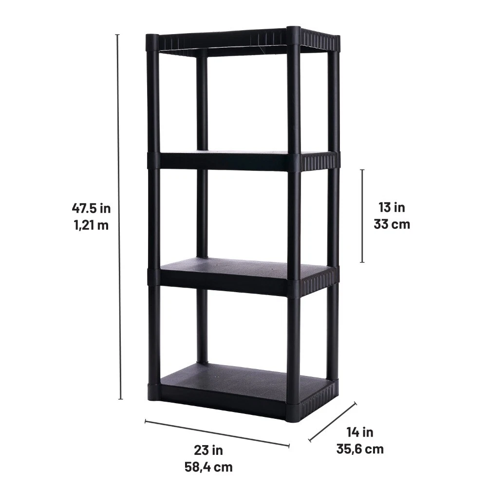 Organize your home goods, pack away your hunting gear during the offseason, or store all your hobby supplies in one place with Plano Standard Duty Storage Shelves. Each of the 4 heavy-duty plastic shelves can hold up to 50 lbs for a total storage capacity of 200 lbs. Life can box you in Work, Household chores, Every after-school activity ever. Ironically, the best way to break free is with a box. And not just any box, but a Plano. From tackle boxes to storage trunks to coolers all as smartly designed as they are rugged. So you can keep all your gear neatly stowed and ready to throw in the truck whenever adventure calls. Hit the road while the bite is hot. And be ready to make your getaway every chance you get. Product is made for adult use. PLANO PLASTIC STORAGE SHELVES: Organize your home, closet, garage, laundry room or office with Plano Standard Duty Shelving Units. 200LB STORAGE CAPACITY: Each of the 4 plastic shelves has a maximum weight capacity of 50lbs. The full shelving unit can easily accommodate up to 200lbs of total weight. DURABLE CONSTRUCTION: Made from heavy-duty, impact resistant plastic, this storage shelf is extremely durable and built to last. PRODUCT SPECIFICATIONS: Total Unit Dimensions: 48 inches tall x 21 inches long x 14 inches wide. Each shelf can hold items up to 13 inches tall. The unit is easy to assemble with no tools required. VERSATILE USE: The deep storage shelves are perfect for organizing home goods, tools, shoes, camping gear, fishing equipment, hunting supplies and more. Great for all ages - adults, teens, seniors, etc.