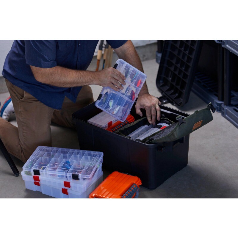 The Sportsman's Trunk has a spacious interior for extra-large objects – perfect for all your bulky and oversized equipment. Durable and lightweight, this impact-resistant plastic trunk features comfortable recessed handles for easy transport even when loaded. Tie-down points on either side provide stability when on the move. Life can box you in. Work. Household chores. Every after-school activity ever. Ironically, the best way to break free is with a box. And not just any box, but a PLANO. We've been helping anglers, hunters, and outdoor-loving families bust out of their routines for over 70 years. From tackle boxes to storage trunks to coolers – all as smartly designed as they are rugged. So you can keep all your gear neatly stowed and ready to throw in the truck whenever adventure calls. Hit the road while the bite is hot. And be ready to make your getaway every chance you get. PLANO SPORTSMAN’S STORAGE TRUNK: Store or take your tools, hunting gear, ammunition, camping supplies and more on the go with the Plano Sportsman’s Trunk. With a 14-gallon capacity, the possibilities are endless. DURABLE CONSTRUCTION: Reusable storage that stands the test of time. This heavy-duty storage bin is made from high-impact plastic with molded grooves for sturdy stacking, and a reinforced removable lid. LOCKABLE & WEATHER-RESISTANT: Tough, snap-down latches secure the lid shut – keeping loads secure and weather out. Padlock tabs provide maximum security. PREMIUM STORAGE INDOORS AND OUTDOORS: These black storage bins fit easily in the closet, attic, garage or storage shed. Tie-down points on either side provide stability during transport in a truck, boat or plane. PRODUCT SPECIFICATIONS: Total capacity of 14 gallons. Interior dimensions: 20"L x 12"W x 11.5"H. Exterior Dimensions: 24"L x 15"W x 13"H. Smoke. DESIGNED FOR CONVENIENCE: The stackable design saves space and won't get crushed under weight. Integrated easy-glide wheels and smooth recessed handles make for easy transport and hauling from the truck to the campsite or hunting blind. PLANO has been helping anglers, hunters, and outdoor-loving families bust out of their routines for over 70 years. BE PLANO READY. Enjoy your pursuit to the fullest.