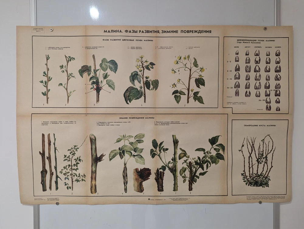 🌻 Plant Vintage Poster 1985 🌿 Soviet Boho Style 🌳 raspberry growing process