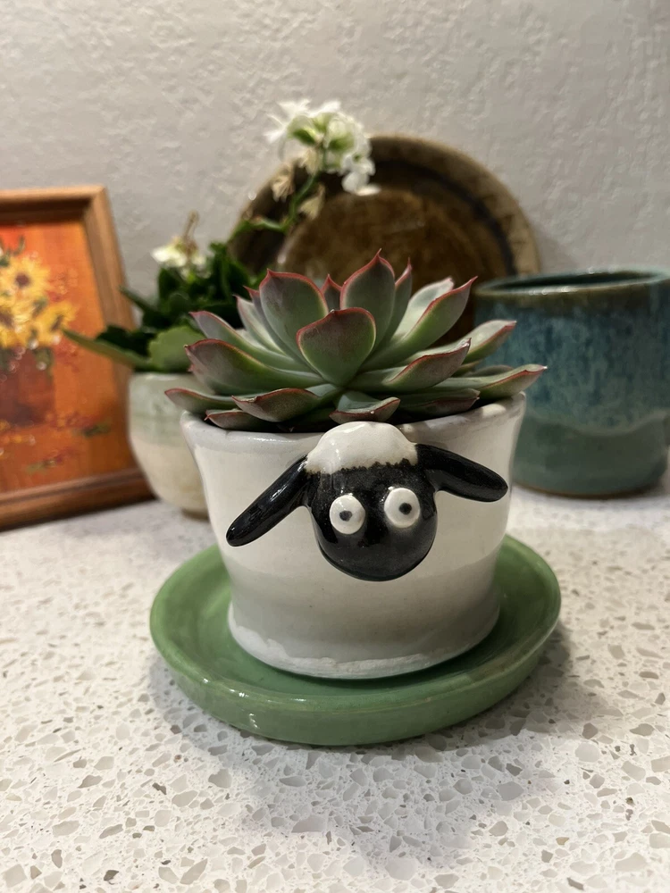 Plant pot Handmade Ceramic. Cute Sheep Planter