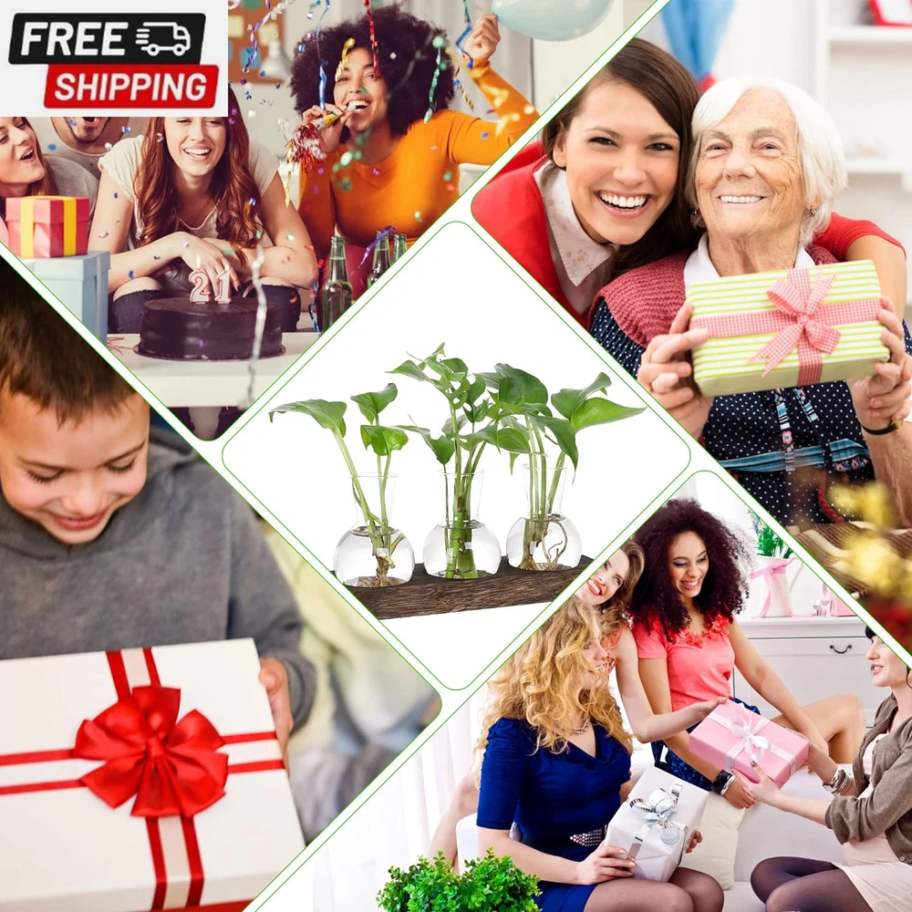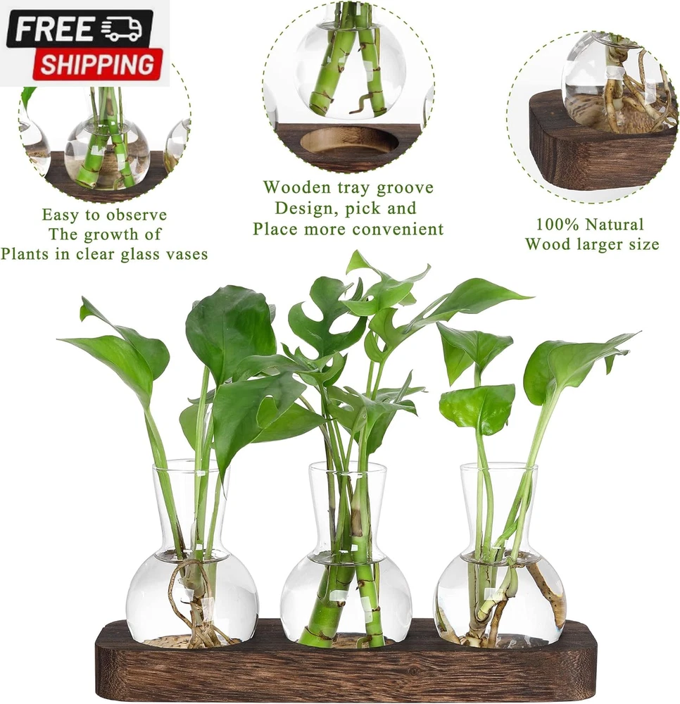 Plants Propagation Stations,Plant Terrarium with Wooden Stand Wall Hanging Glass Planter Plant Propagation Vase for Indoor Office Home Garden Decor Plant Lover Gifts for Women 【Plant Propagation Stations】This desktop propagation vases for plants is perfect for hydroponics, air plants, and flowers, and it also helps purify the air and create a relaxing atmosphere. Who likes plants and enjoy life will love it at a glance. 【Stylish Design】The groove design of the wooden tray is combined with a flat bottomed light bulb vase. Compared to other wall mounted bulb vases, it does not restrict plant growth and is easier to carry and exchange water. 【Retro Home Office Decor】Simple and elegant style plant propagation suit any style room. Add nice touch to your house, put it on window sill, coffee table, living room, ding room, kitchen, dormitory and bedroom. It will be more beautiful and eye-catching if you fill the bottle with colored water or some cobbles. 【Best gifts for women plant lovers】Mother's Day, birthday, Christmas, Valentine’s Day, Thanksgiving gift ideas. Nice present to your nature-loving, gardeners. Sweet wedding party, anniversary, and special occasions decoration gifts. 【Size】Wooden tray: 9.5'' L x 2.8'' W x 1'' H, Vase: 2.8"D x 3.9"H; Opening Diameter is 1.4". No need to install, can be used directly, the product should be placed in the no-sunlight to use.Note: Can not be placed in the sun! 【Service Guarantee】Customers First. We are responsible for any damage during transportation. If you have any questions, contact us through Amazon please. We will serve you wholeheartedly until you are satisfied. Product Description YIBOT Bring green into your life It really is cute,The glass is very clear and sit perfectly into the grooves in the wood base, which adds to the appeal, and the dark wood base has a rustic classiness to it. Gifts for Women This is an perfect desktop glass bulb vase for plant's propagations and cuttings, use to propagate baby plants. It is suitable for display fresh flower, hydroponics plants. Make a great gift for the plant-lover in your life. YIBOT Plants Propagation Stations Plant Terrarium With Wooden Stand Package Contents: 3x Glass Vase 1 x Wooden Tray 3 bottle wooden tray size: 9.5'' L x 2.8'' W x 1'' H Vase: 2.8"D x 4"H Material: Wood, Glass Note: No plants or other decorative objects included in this item! Note: Can not be placed in the sun! Best Gift for Plant lover Desktop Propagation station with retro style great for floral arrangement, home or office decoration as well as various gift ideas. Plant Gifts for Plant Lovers Women Best gifts for women plant lovers,suitable for various festivals such as: Mother's Day, birthday, Christmas, Valentine’s Day, Thanksgiving gift ideas. Shipping Fast shipping is very important for us. Our standard US shipping service is FREE. Your order will be shipped within 2-3 business days upon full payment received. Your order will be delivered within 2-3 business days after the handling time. We only ship to the confirmed PayPal address. We reserve the right to cancel any order for any reason at any time. We are not responsible for undeliverable addresses. Returns and payment We offer a 30 days return policy from checkout winning date. We allow only PayPal as payment method FeedBack Your feedback very important to us, after you get your package and you are satisfied with our service please leave us positive feedback If you have any problem with your order / any questions please before leave any type of feedback For any questions, using eBay contact system Please visit our eBay store to check out other items for sale! Thank you for shopping at our store.