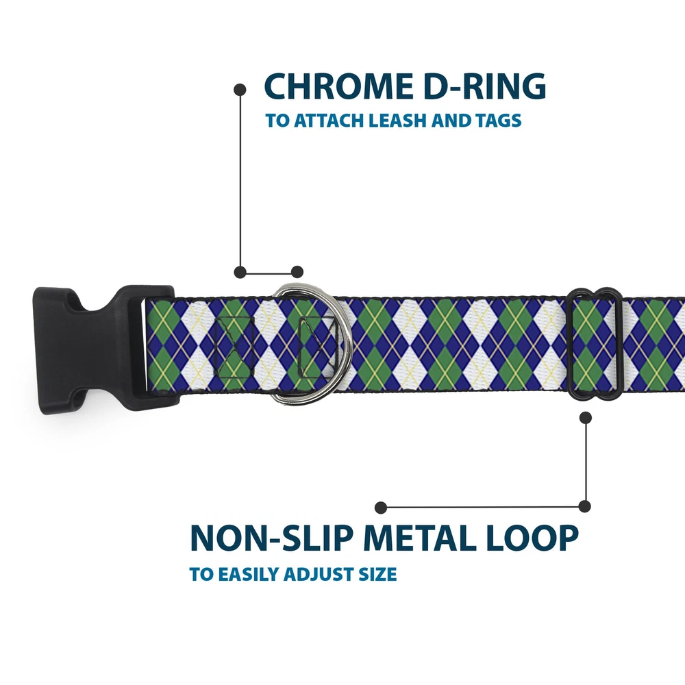 Plastic Clip Collar Argyle Navy/Green/White/Gold NARROW-Small 7-8.5"